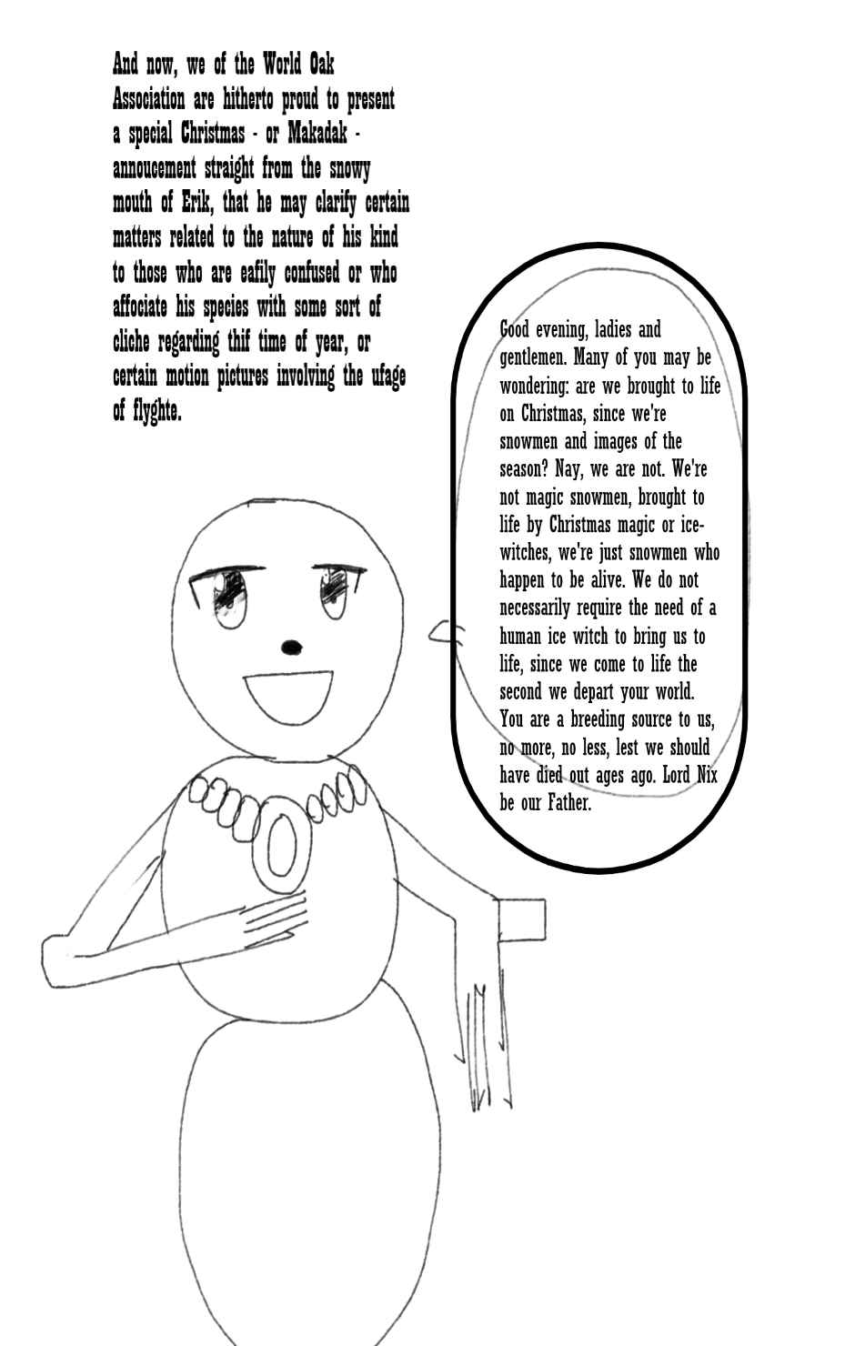 For centuries, the snowmen have been isolated from the rest of the multiverse, dismissed only as folklore by the wondrous species that reside within. Now they’re back. Meet Erik, a snowman with a heart of gold, and Oriel, his guardian Angel, kicked out of heaven for being selfish. They skip merrily through the multiverse as much as they can, fighting evil wizards, wicked faeries and fearsome giants. But an evil snowman with superpowers is gathering an army of clockwork robots, intent on conquering the multiverse by force, and unless our heroes can weather the current conflict, they’ll soon be skating on some very thin ice…