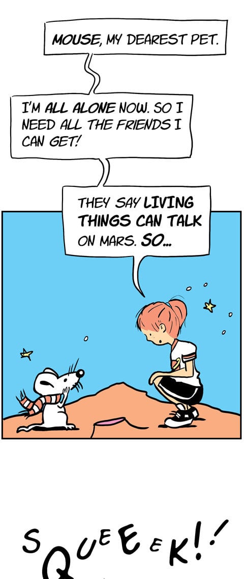 Whether she’s terraforming Mars’ moon Phobos after being left behind on a class trip, learning Martian as a Second Language, or asking a Martian classmate to be her date to the Red Planet Ball, Roxie’s just trying to fit in as an alien on an alien world. Roxie on Mars is a graphic novel told as a series of comic strips. New strips Mondays and Fridays through 2023.