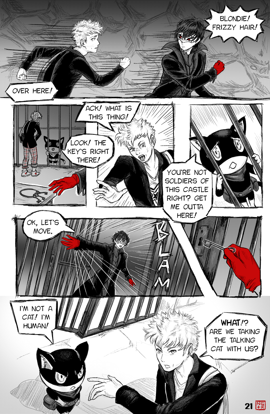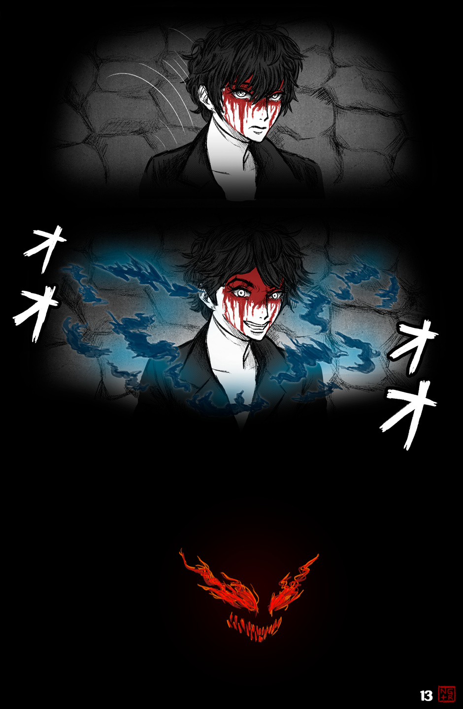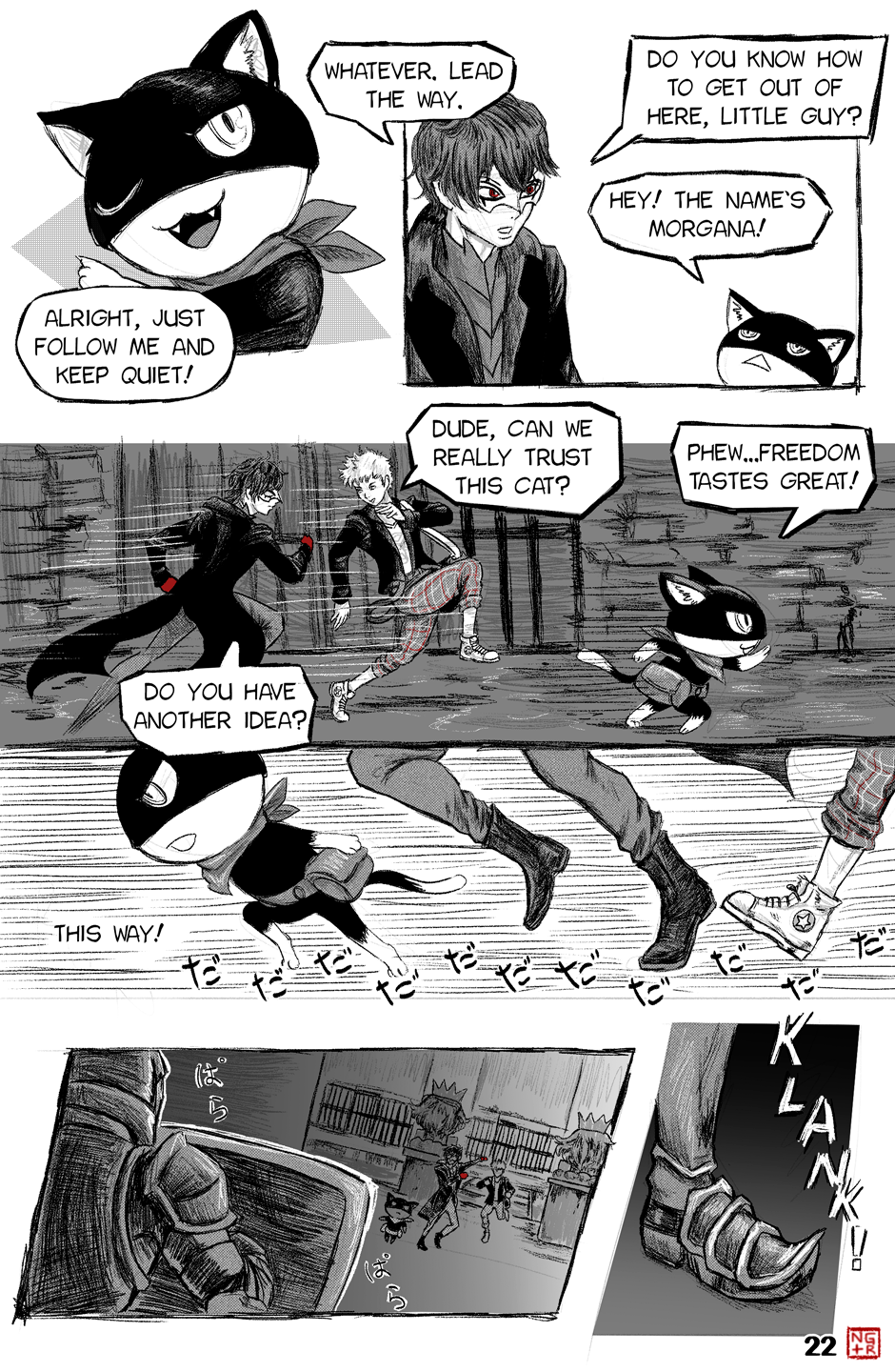 The upgrade of art and direction from the P5XP ending has become even more extensive. Arsene's appearance with the transition from Akira's face to the glowing eyes and grin of the Pillager of Twilight really looked memorable, the scene with Akira and Ryuuji's chattering is unbearable, as it should be. More color pages and artful transitions between frames are nice.