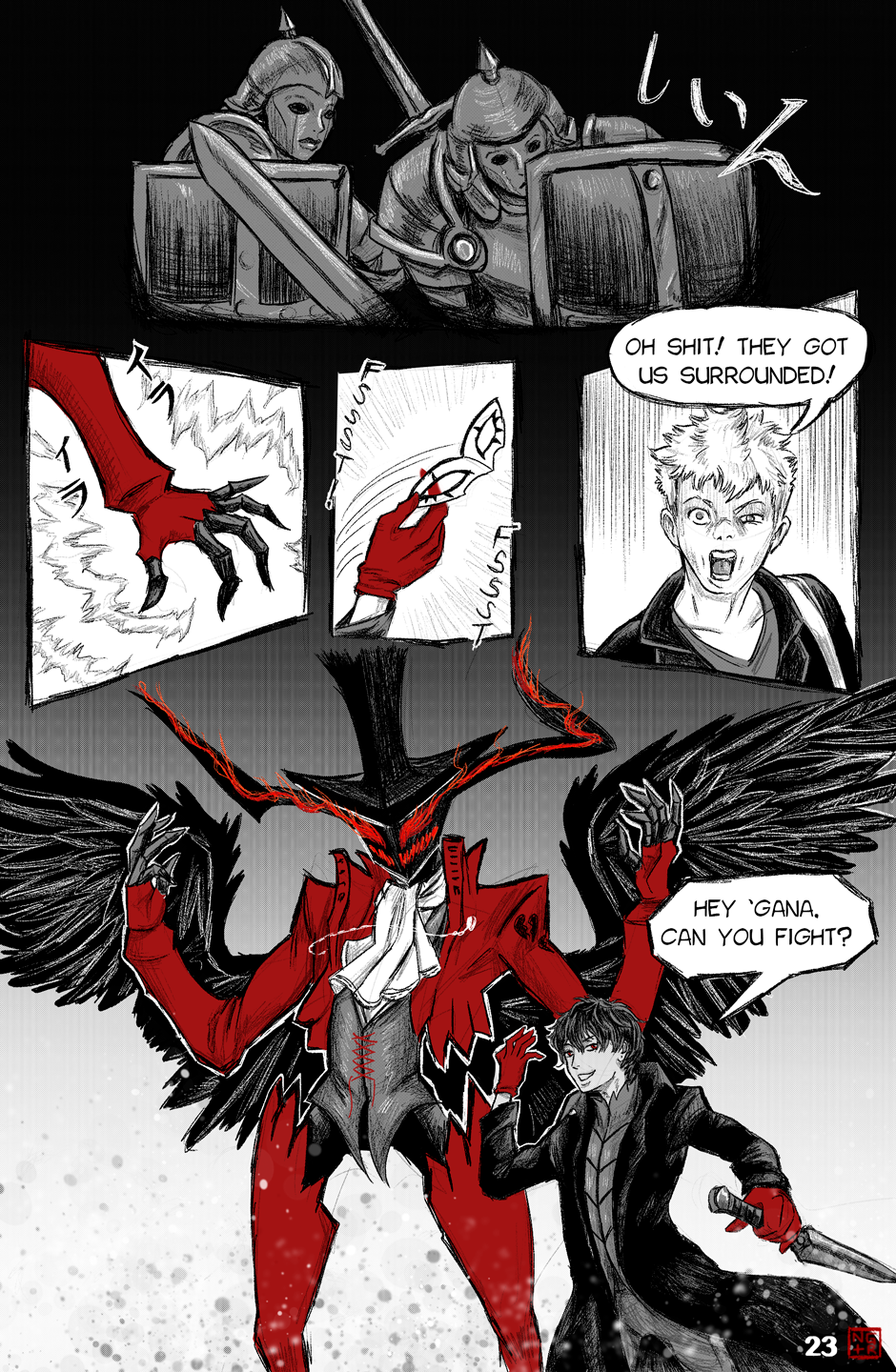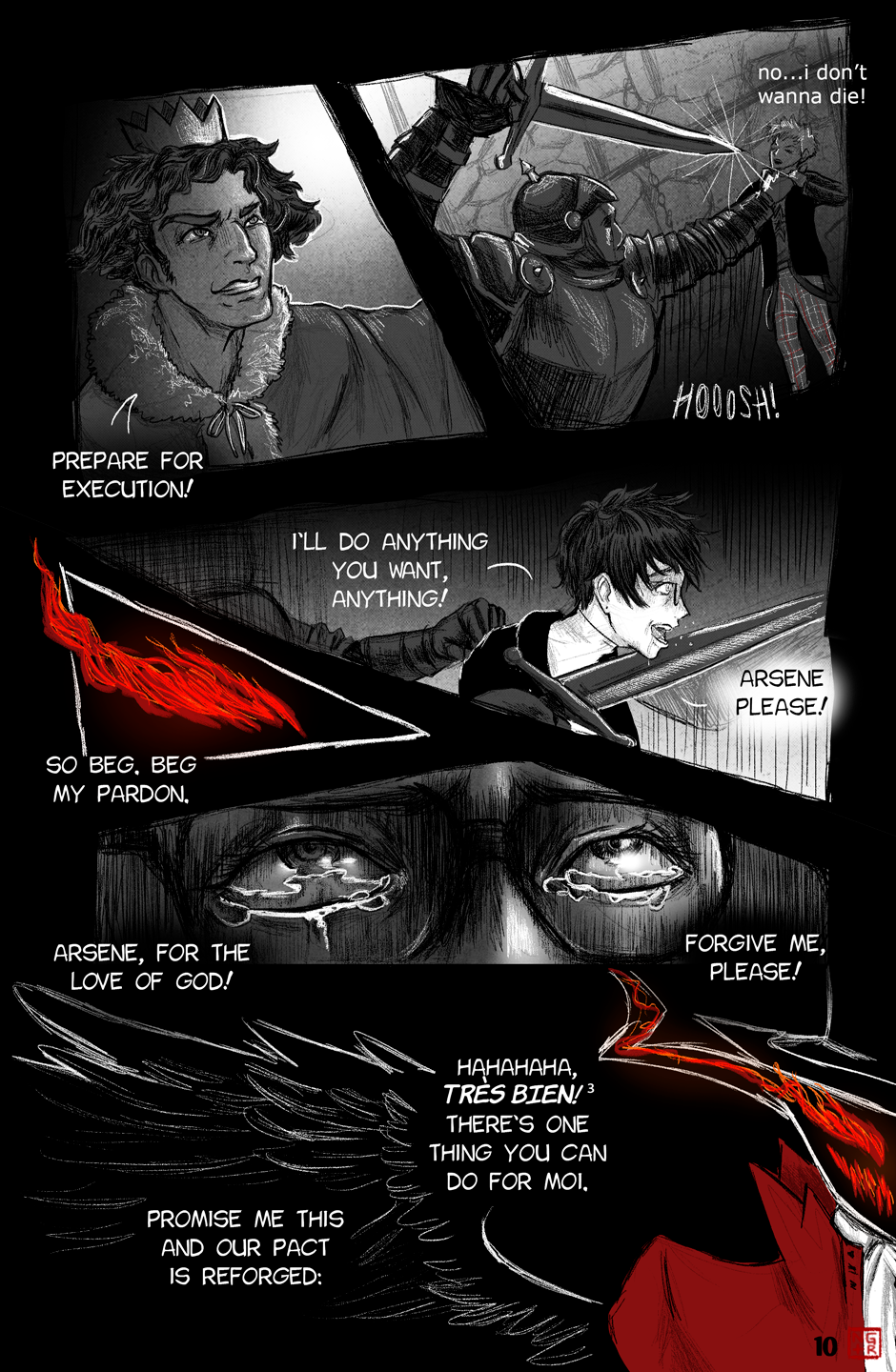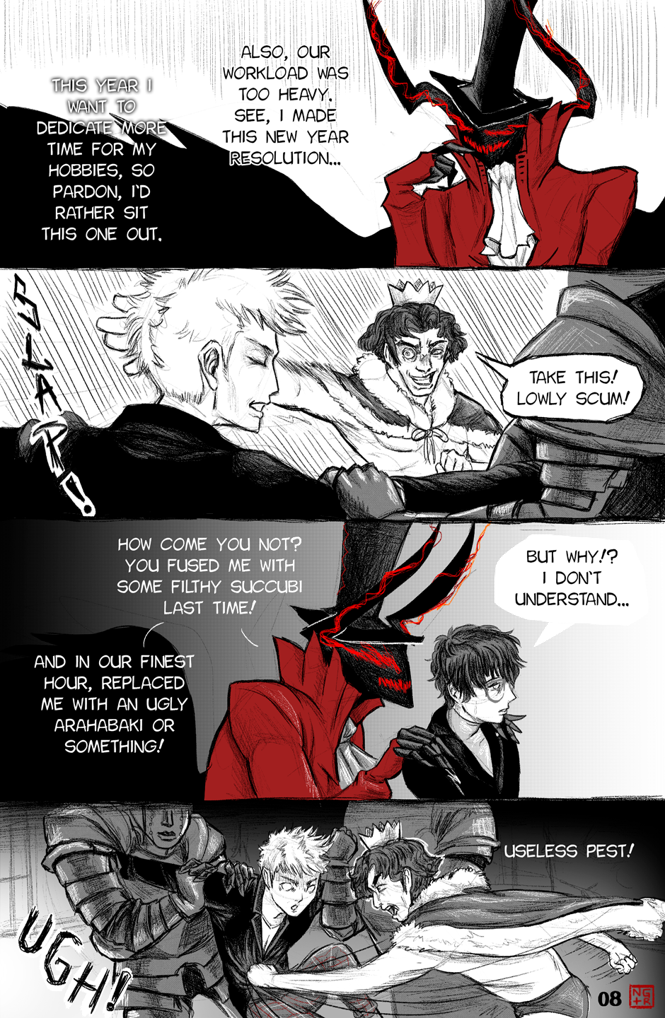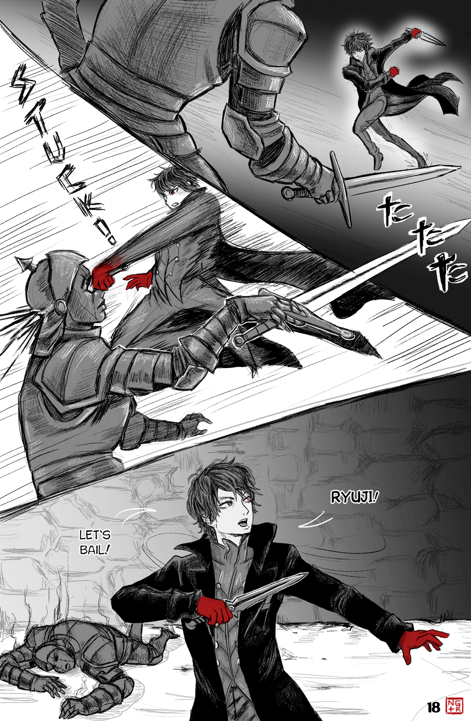 The upgrade of art and direction from the P5XP ending has become even more extensive. Arsene's appearance with the transition from Akira's face to the glowing eyes and grin of the Pillager of Twilight really looked memorable, the scene with Akira and Ryuuji's chattering is unbearable, as it should be. More color pages and artful transitions between frames are nice.