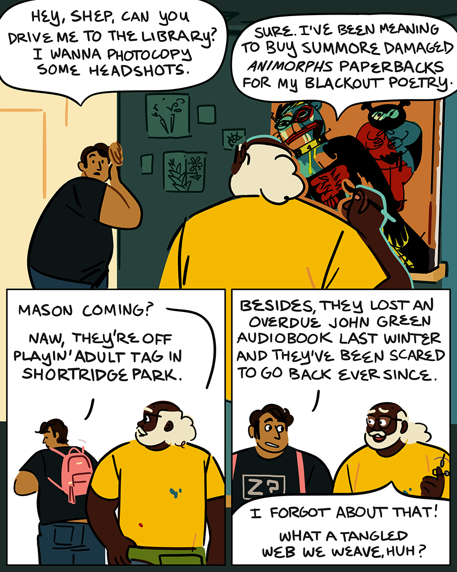 this one, like "let's draw," features some art from my mom! (she provided the lineart for shep's painting)