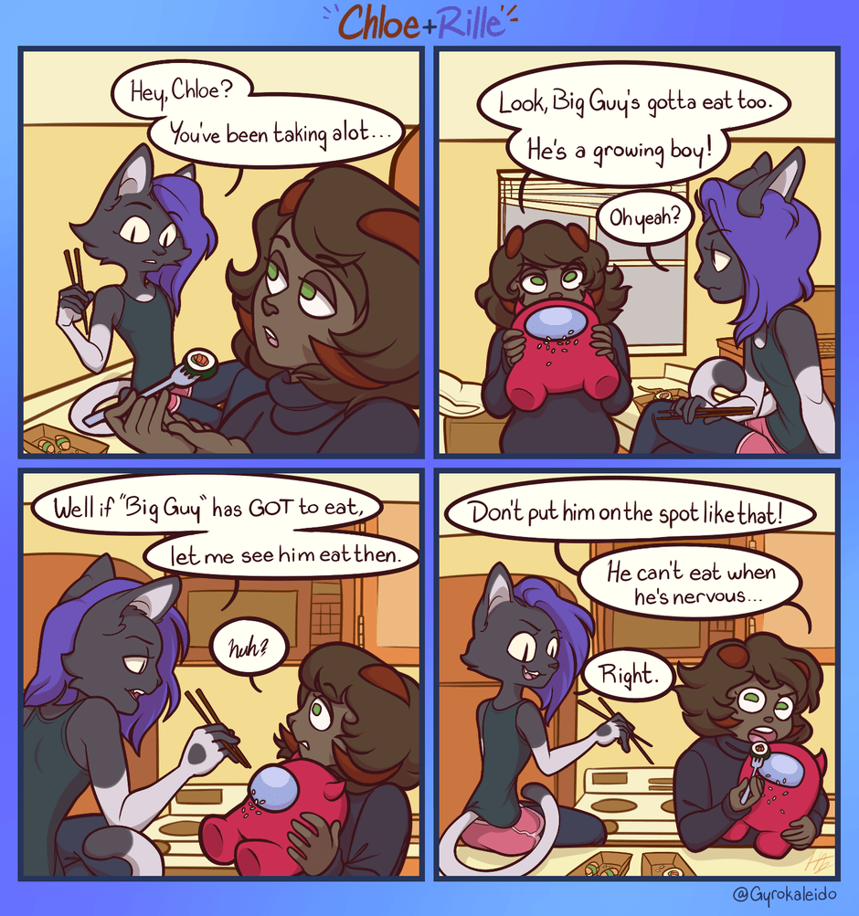 Chloe brings an important figure to sushi night This Guest Comic was made by Gyrokaleido! Check their links here: Twitter: https://twitter.com/Gyrokaleido Tumblr: https://www.tumblr.com/gyrokaleido
