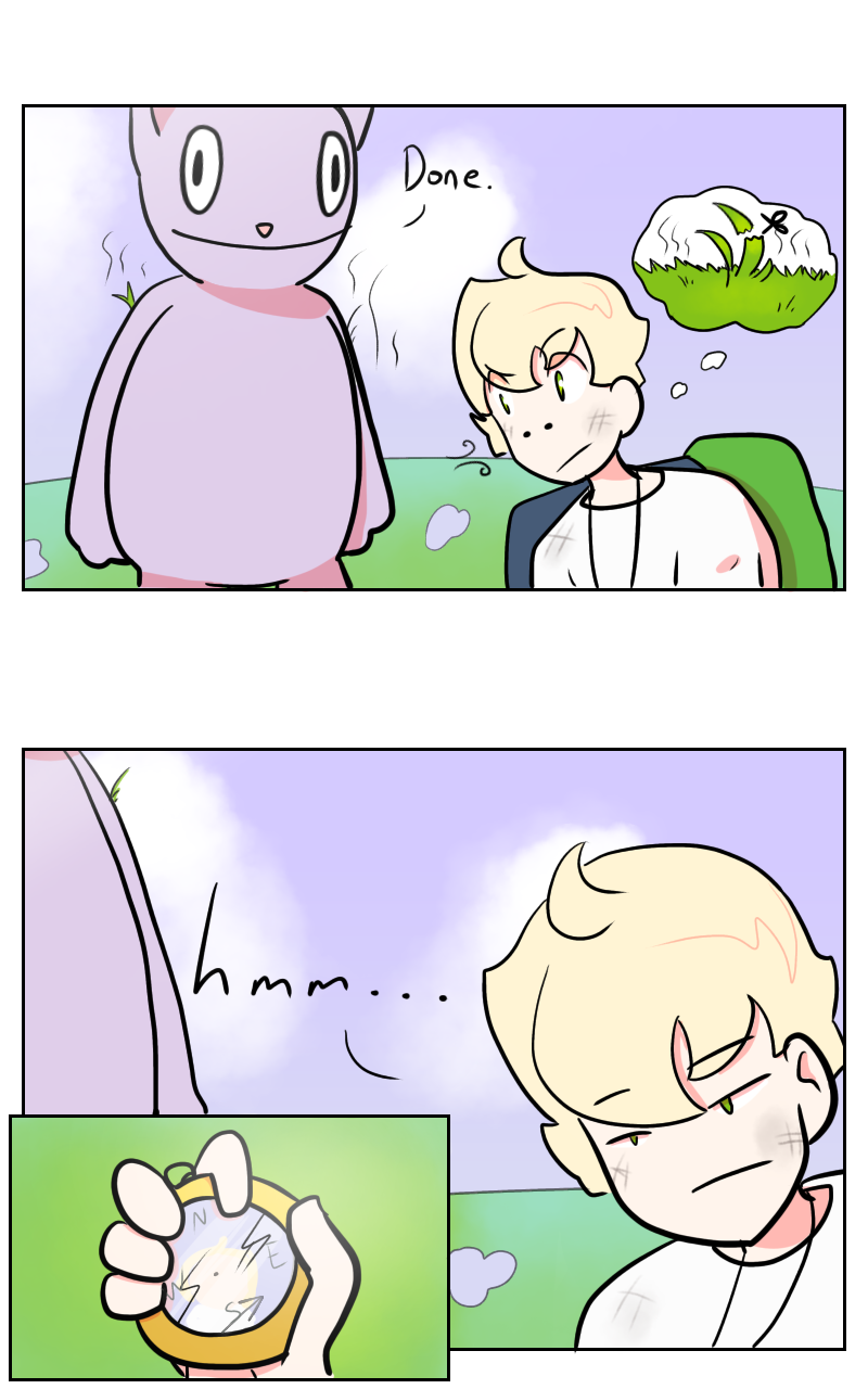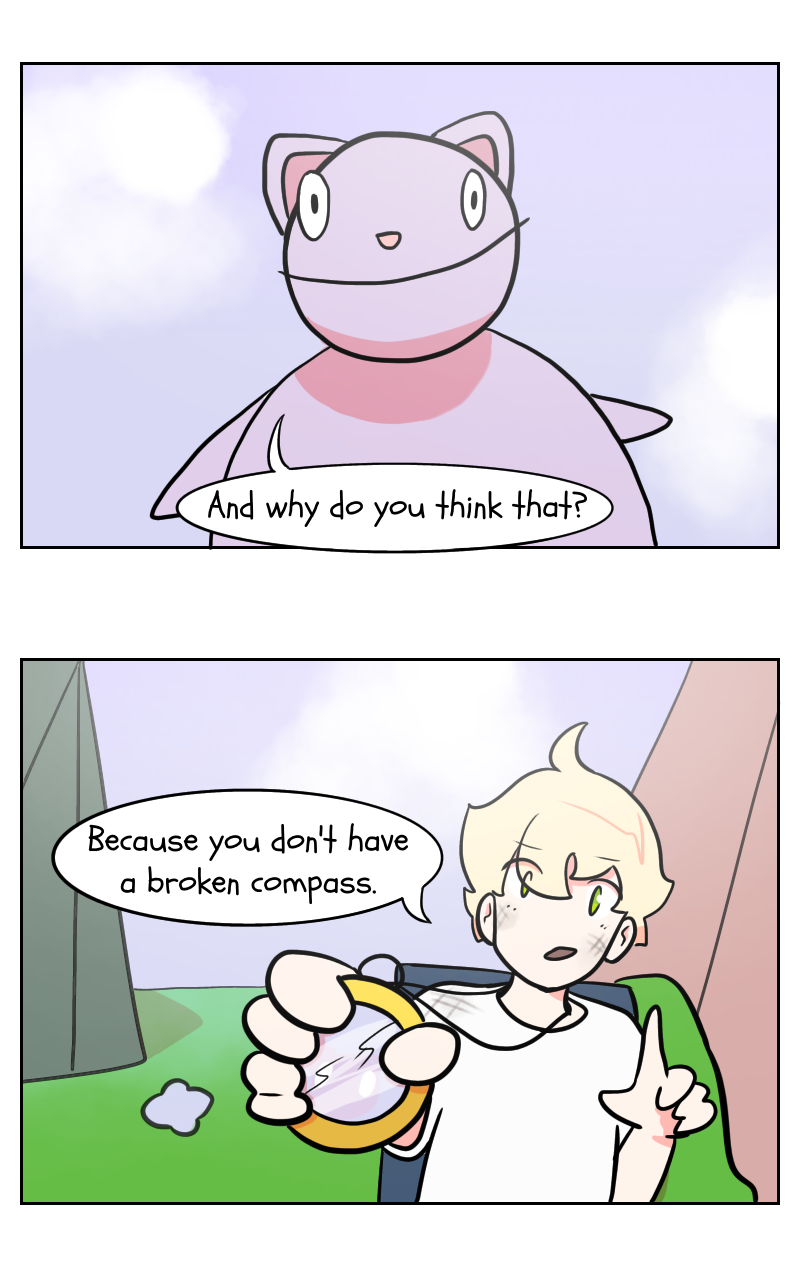 Two randos get stuck in another world with an anthropomorphic cat who mighttt be crazy. The compasses these two twerps have been given for their journeys are as "broken" as the plot of this story. I like to think of it as a surrealist inspirational comedy. (Updates sporadically)