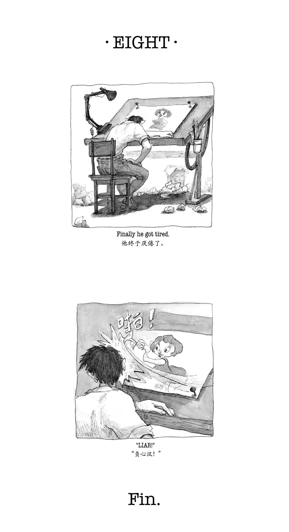A collection of Raven Zhou's comic series. One episode contains two sentences, two images, telling one independent story.