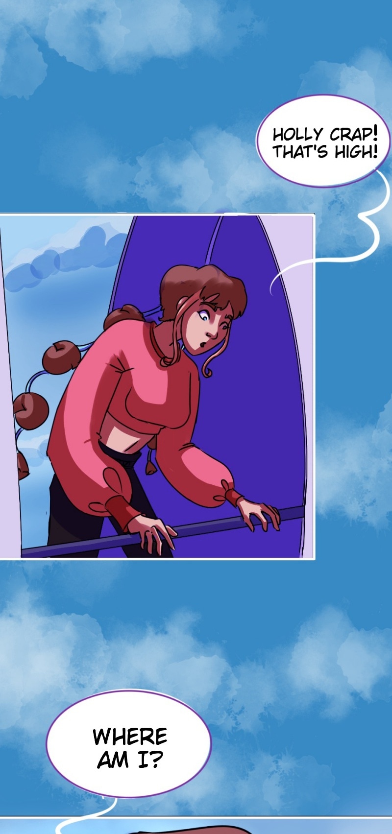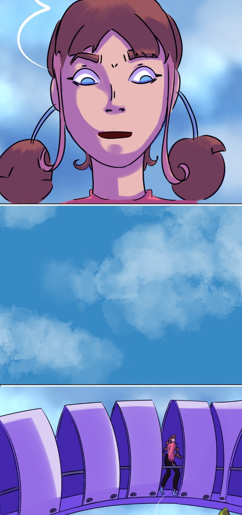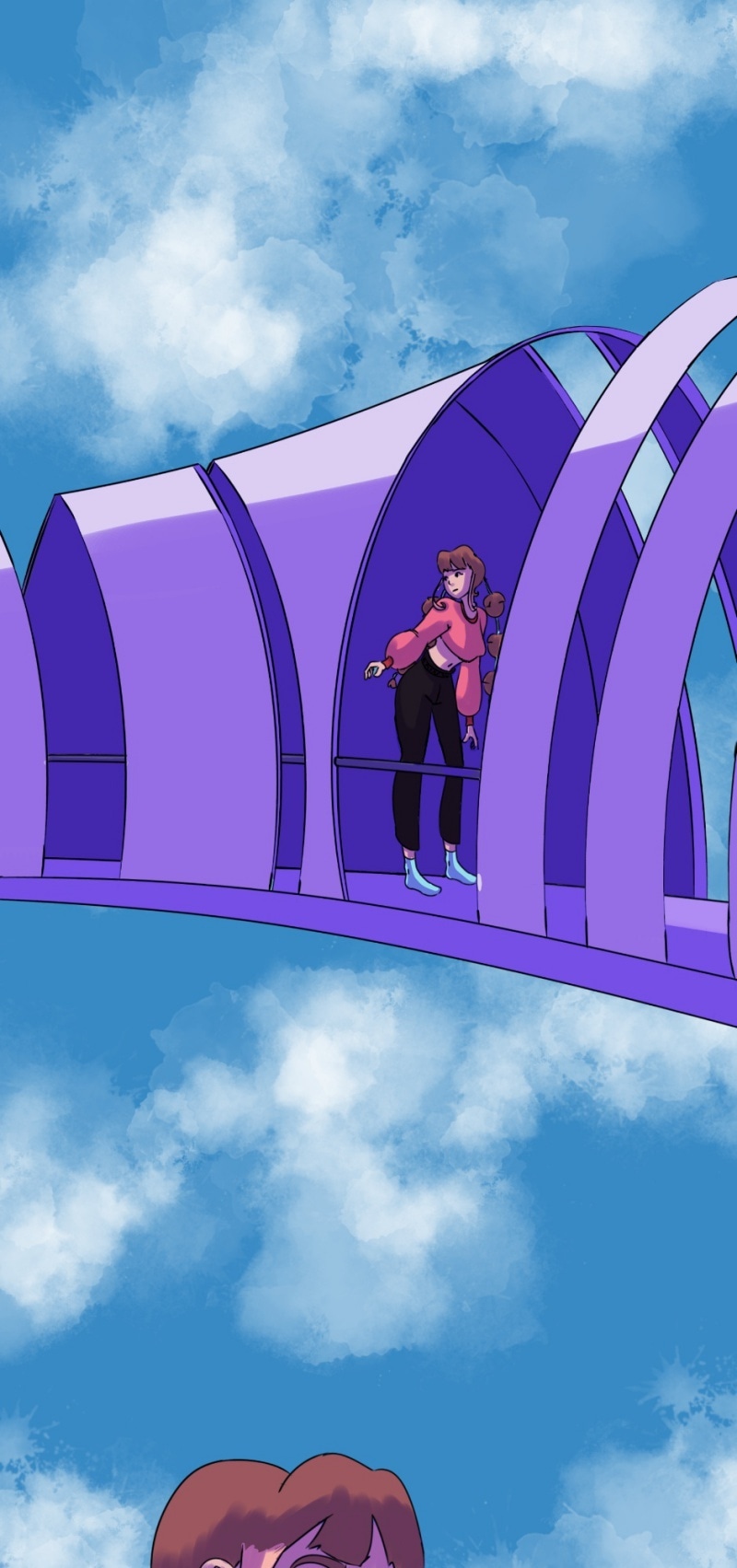 There's a bridge similar to the one she's on in this comic that's outside a cinema I go to. It makes me nervous going up it. I never see anyone use it it's just massive and arched Lol.
