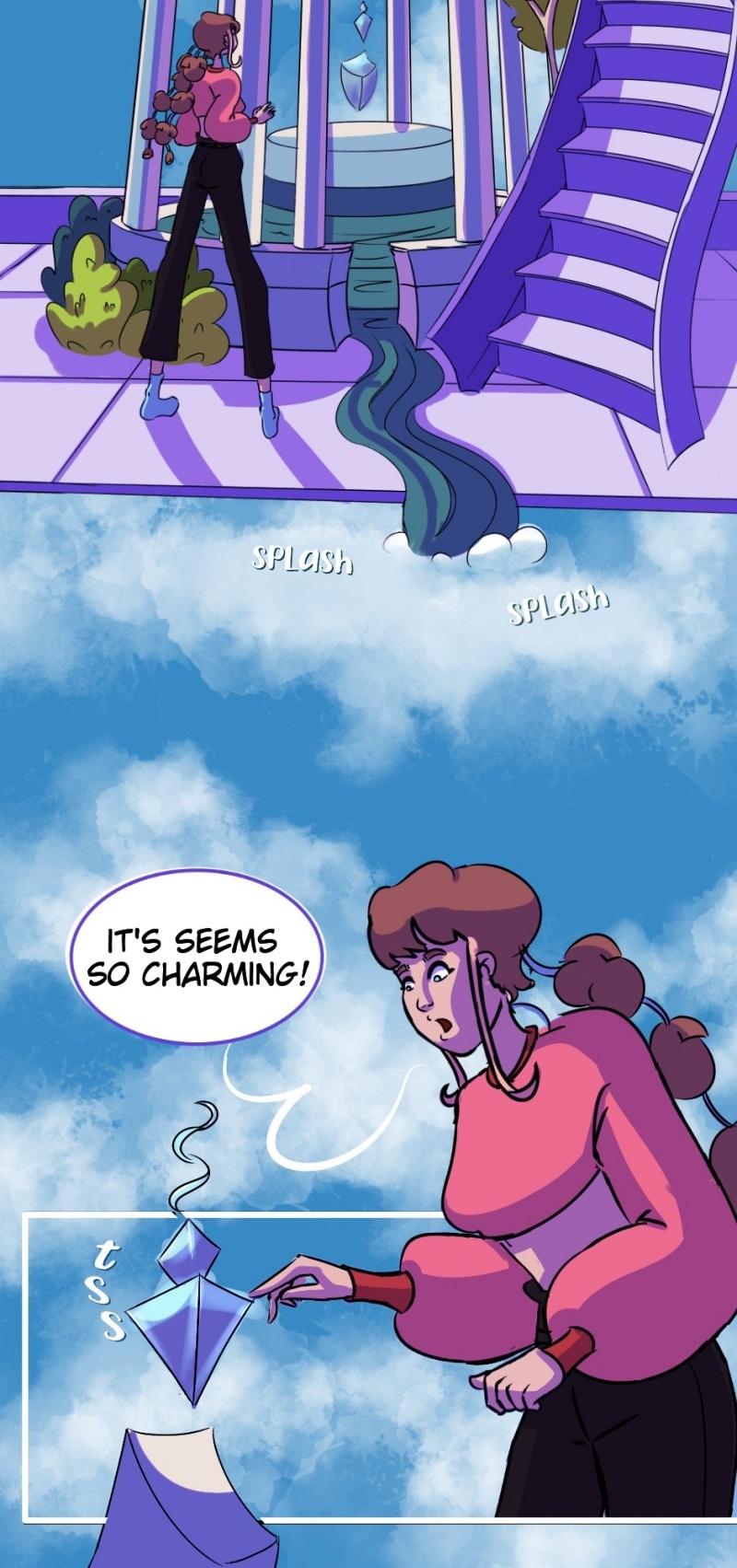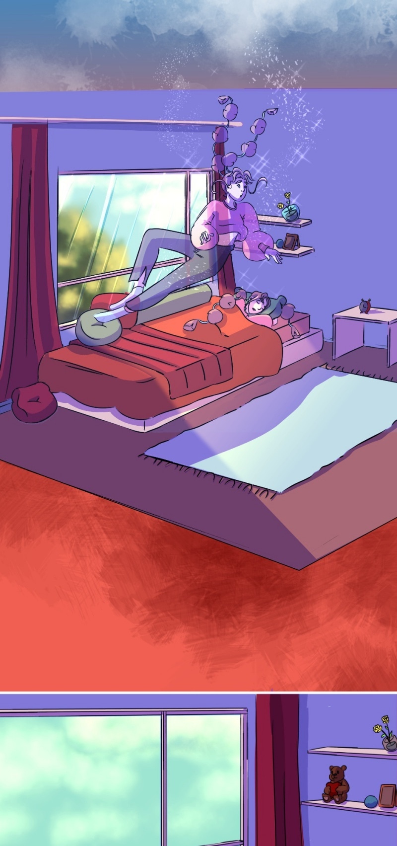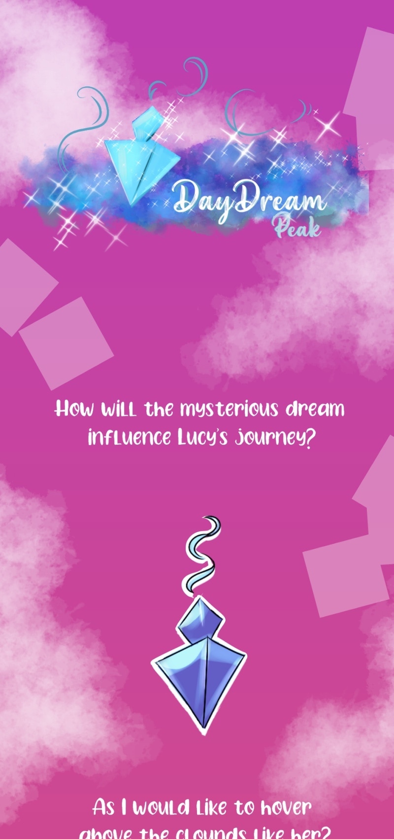 After so many months of idealization and production, I bring you DayDream Peak the official story of Lucy! Apparently she has no idea what's going on, and if it were me, I wouldn't know either! And you? Would you like to soar above the clouds like her?