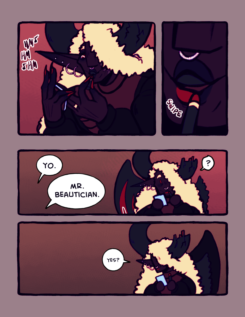 Short comics about my characters, a modern fantasy with demons and angels and the like, whenever I don't want to work on the story-driven story they're actually from. Meant to get people acquainted with them before my actual comic is ready. Updates infrequently, but always on Tuesdays