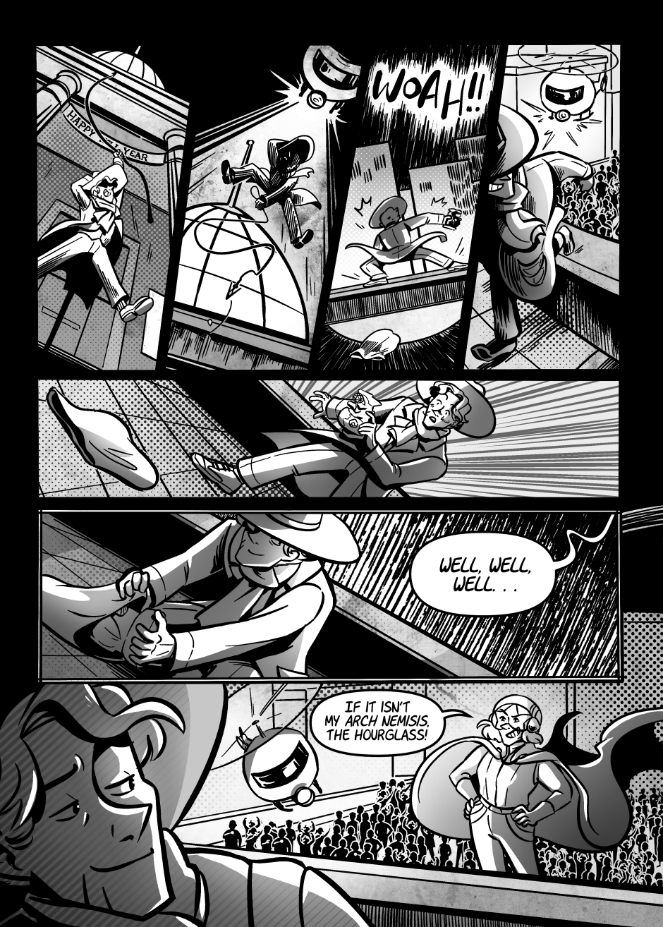 Its New Year's Eve in Beacon City, and master thief Charlie Glass (AKA The Hourglass) has his hands on a new piece of precious artwork. Watch as he makes his spectacular getaway for his adoring onlookers!
