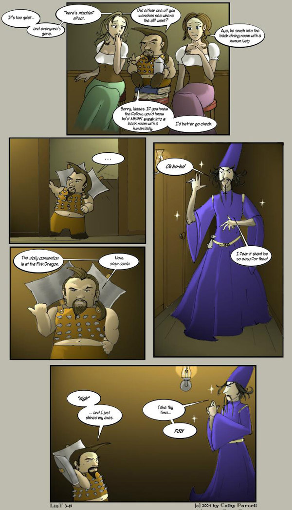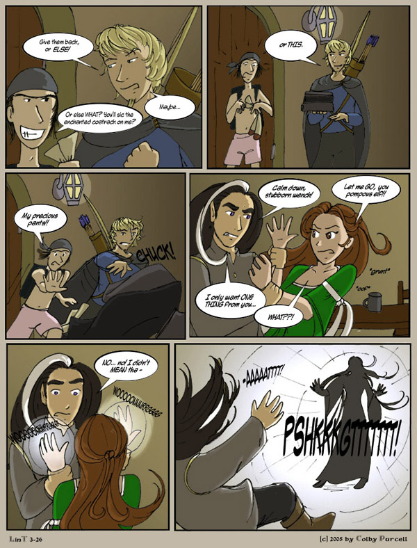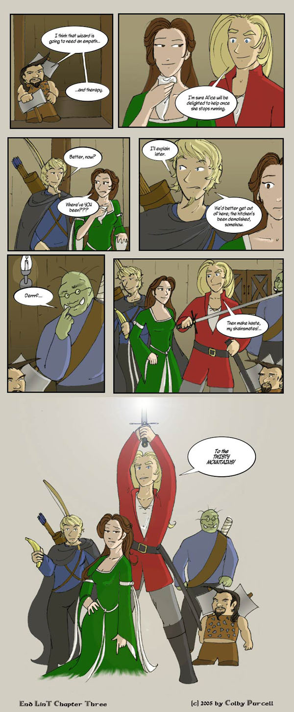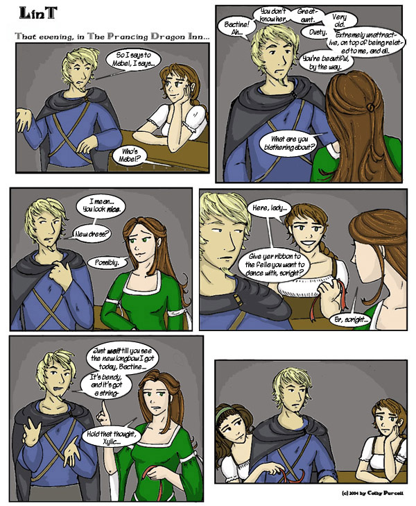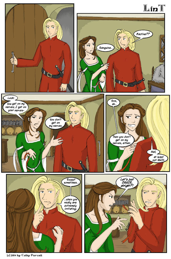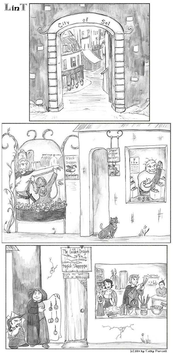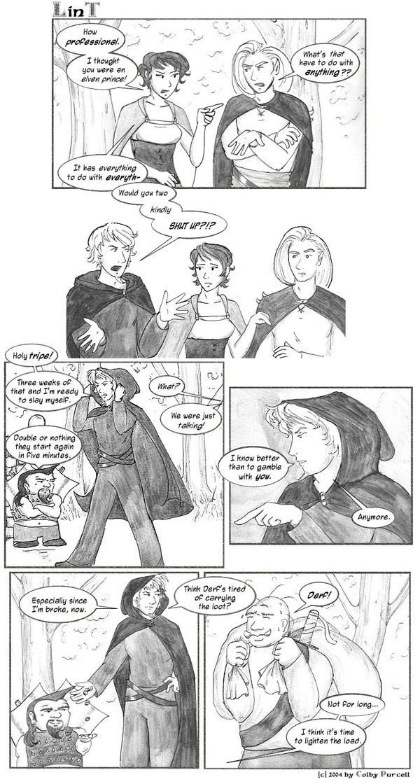 Lint is a fantastical dramedy wherein fantasy tropes are both made fun of and embraced. Lint was completed in 2010, and its sequel, "Lintier", is ongoing.