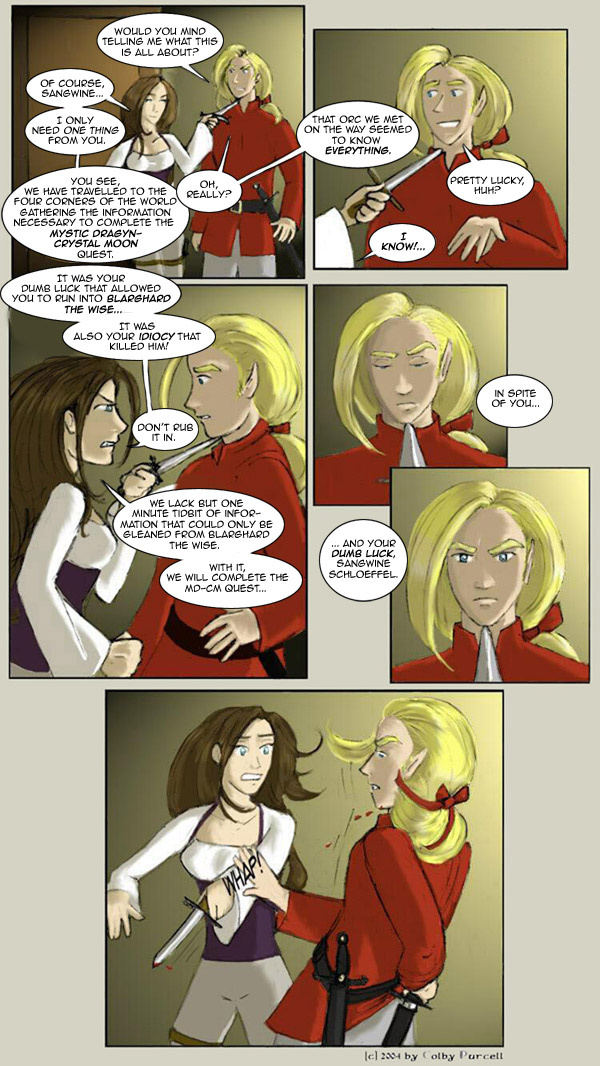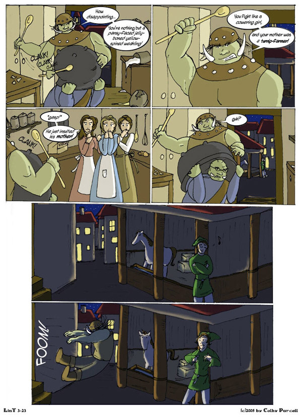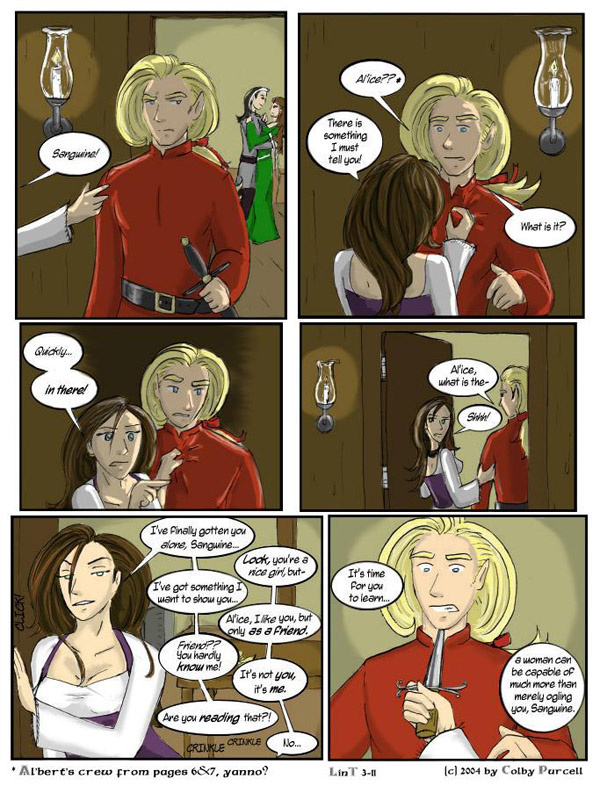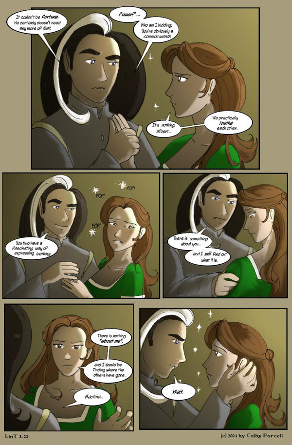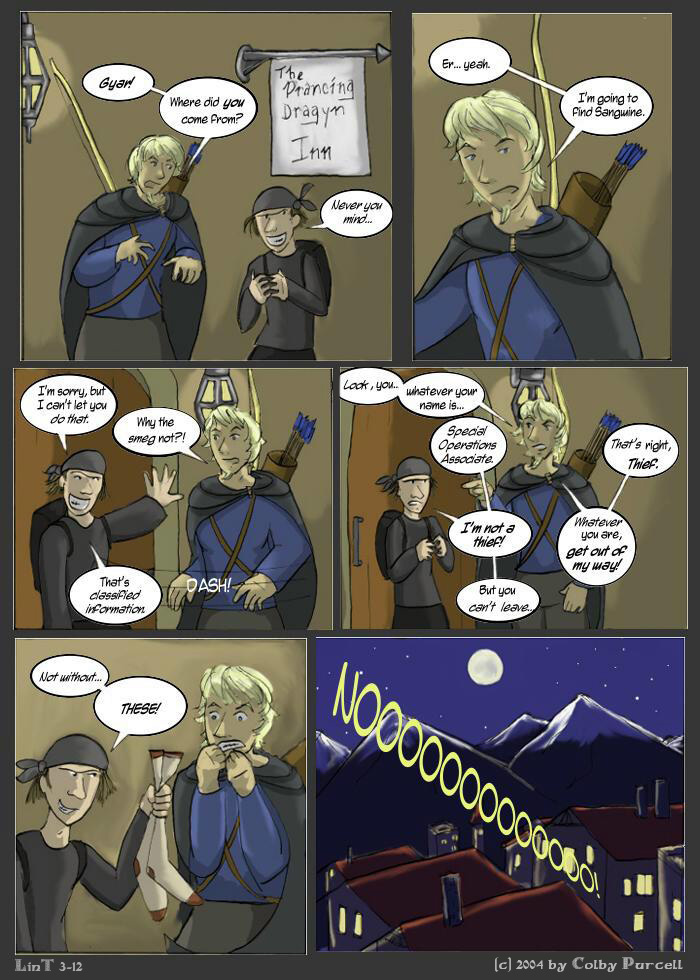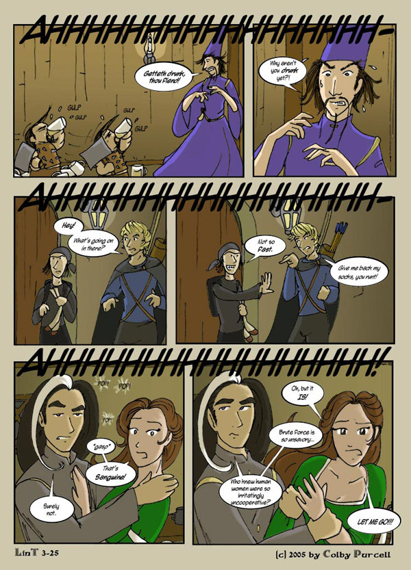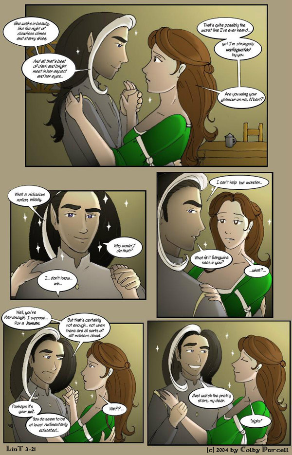 Lint is a fantastical dramedy wherein fantasy tropes are both made fun of and embraced. Lint was completed in 2010, and its sequel, "Lintier", is ongoing.