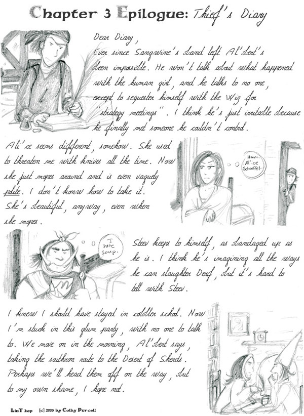 Please let me know if there are any issues, as I've uploaded this in a big chunk just straight from my archives. Is it too small to read? Do any pages seem to be missing? Is my art terrible at the beginning? (j/k, I know the answer to that one)