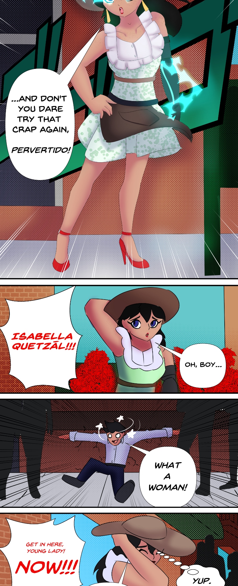 How shocking! Isabella teaches a scumbag a lesson while on her undercover mission in the España district. Even the brightest days have a touch of clouds for the Quetzals.