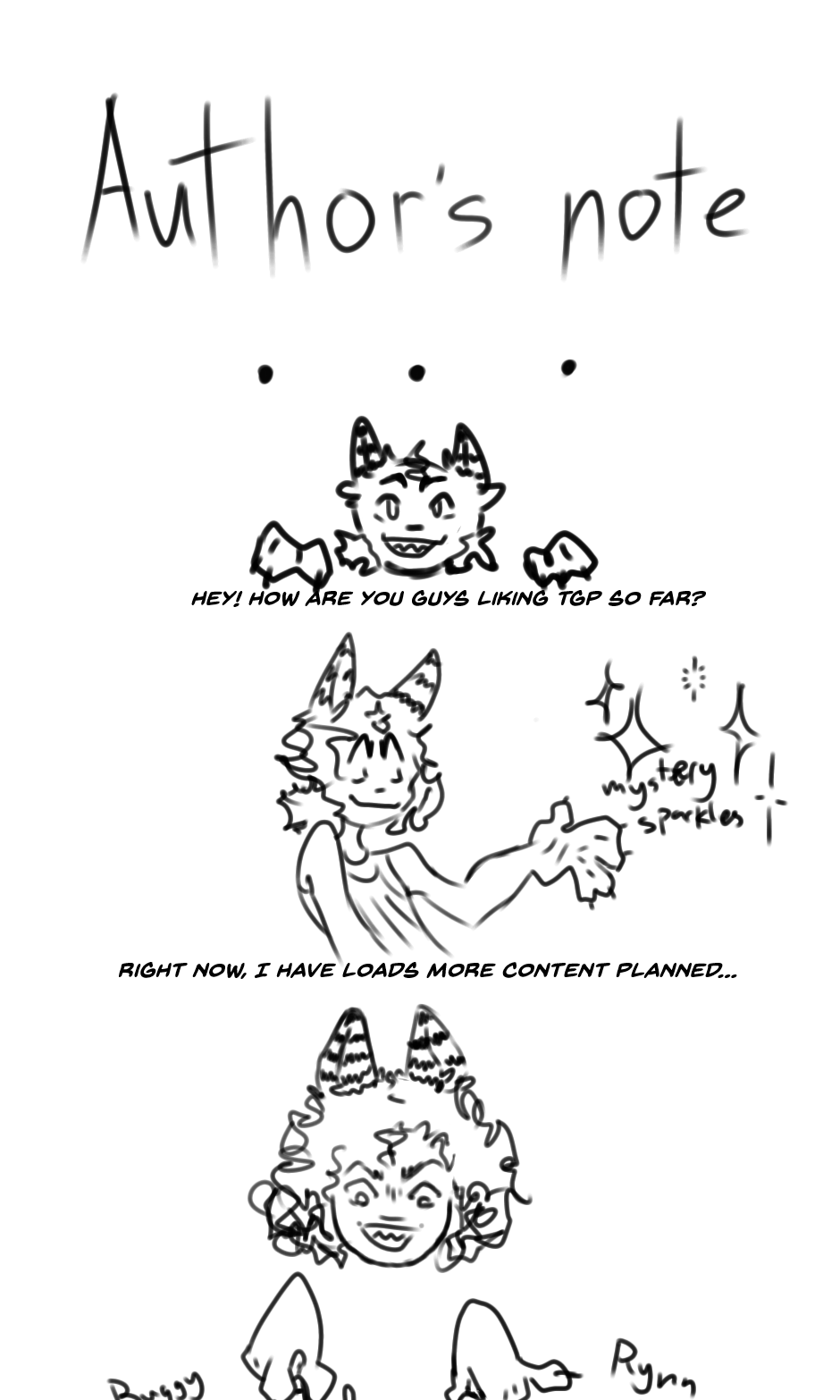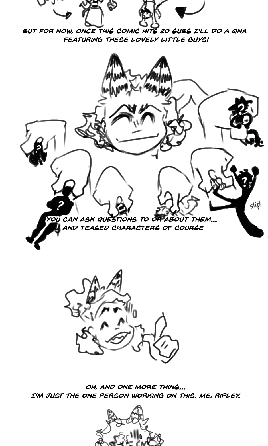 Don't worry, we understand!:D I hope you'll get more attention! ^-^ Also, do you maybe have pictures of the two who will be part of the QnA, because I am not sure if I can recognise them from your sketchy style in this XD (or you know, I can also re-read your work and search for their names ;))