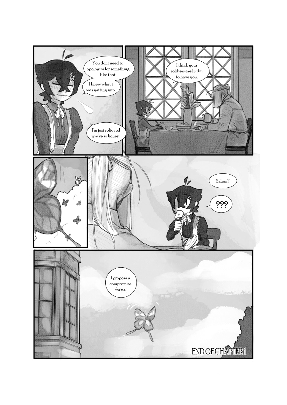 I love the intimacy between them in their conversation, the respect and the thoughtfulness. The art is also pretty. I'm looking forward to seeing more :) 😊