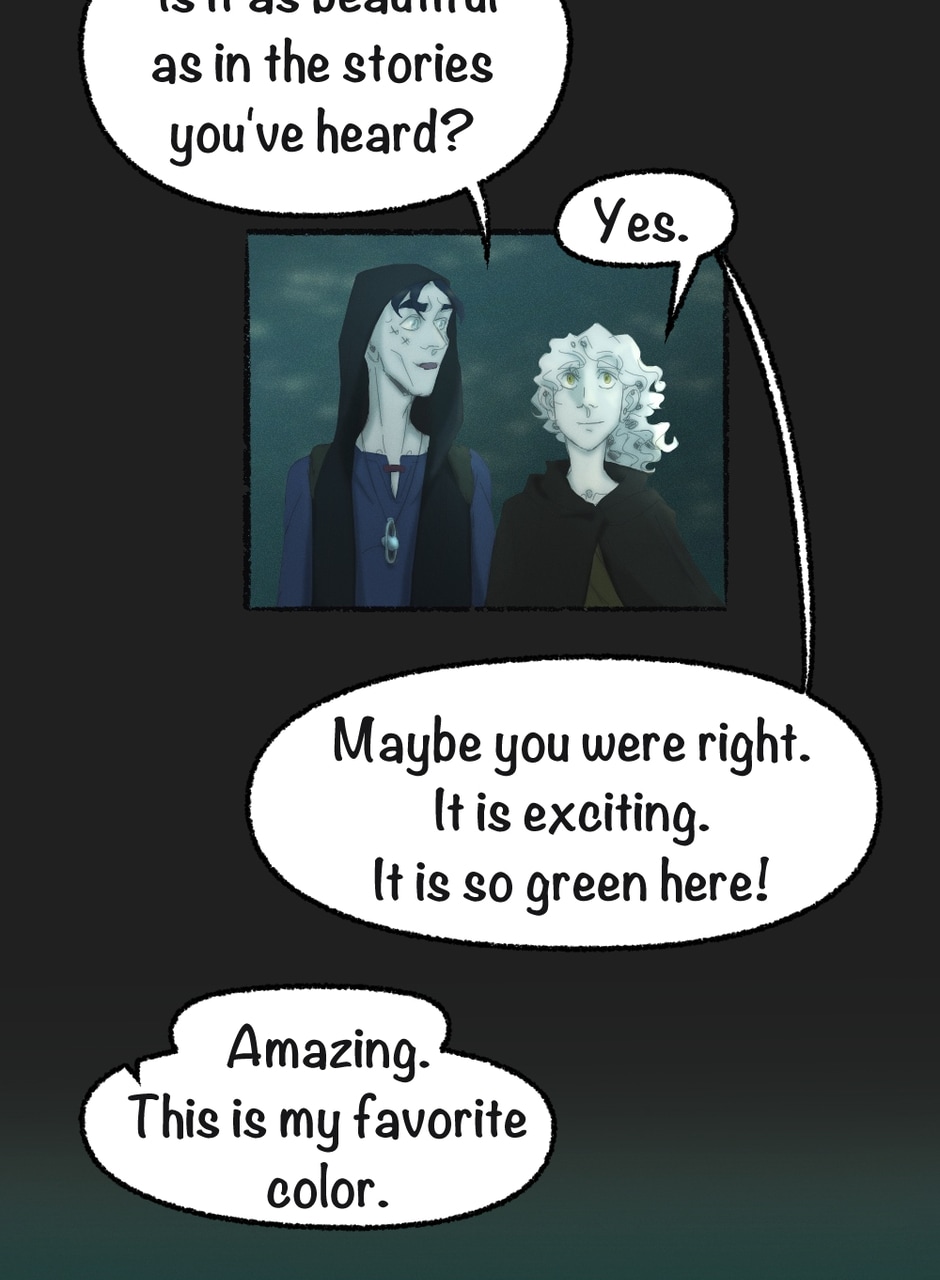 Edit2024 : I changed the layout of some panels, corrected text, with slight changes in the dialogs. The story and graphics remain unchanged. + few extra doodles