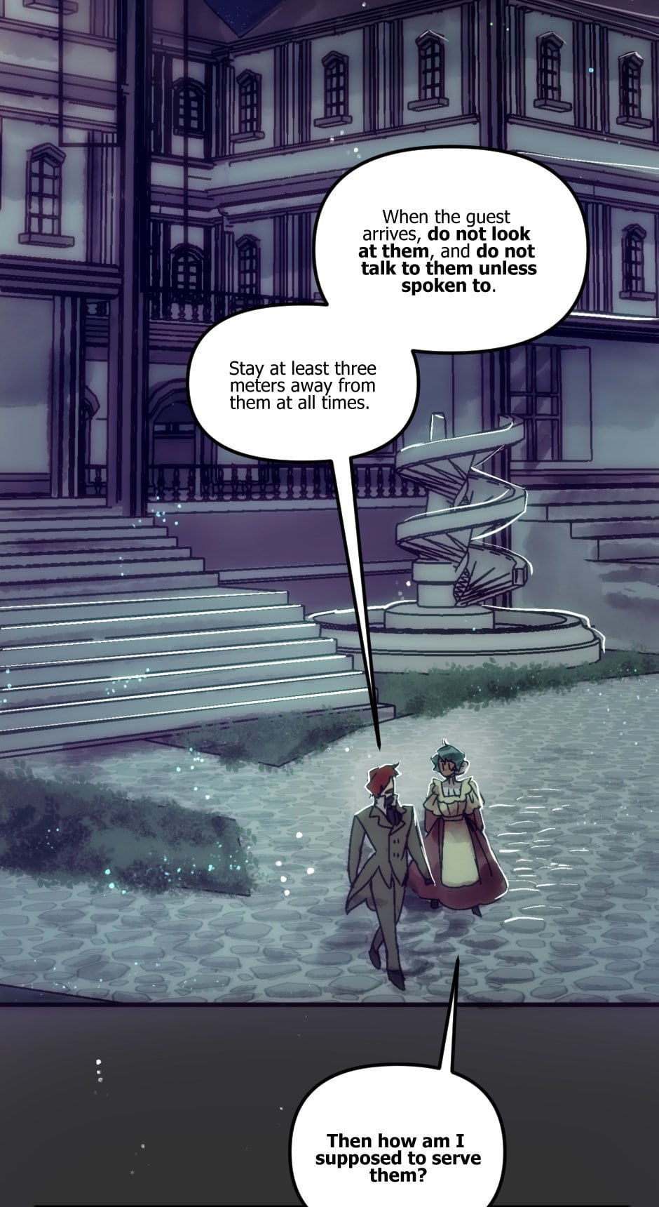"You will not look at them, you will stay three meters away from them, you will turn your back to them, you will serve them, and I expect you don't need me to tell you how to do your job, do you?"
