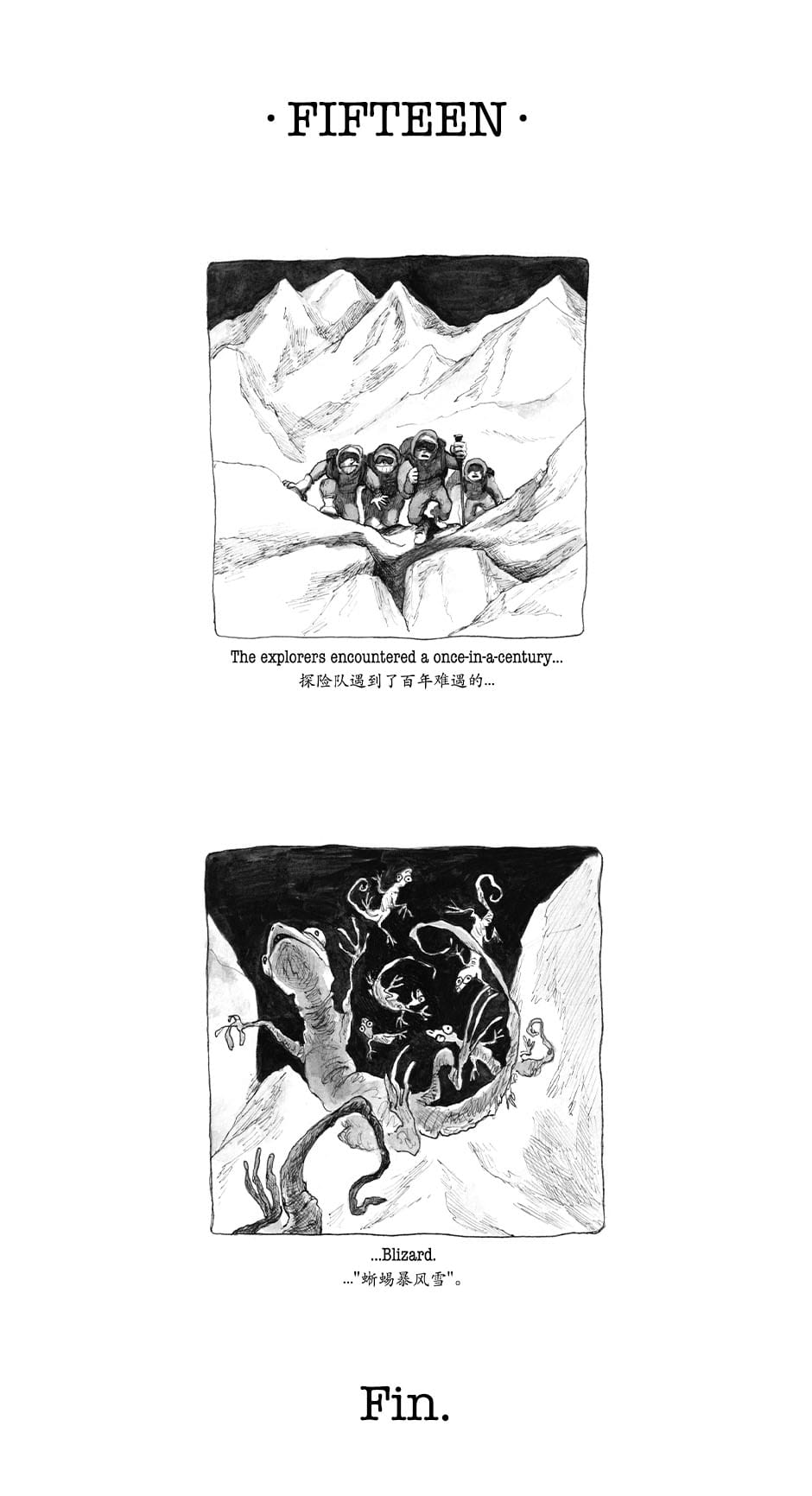 A collection of Raven Zhou's comic series. One episode contains two sentences, two images, telling one independent story.