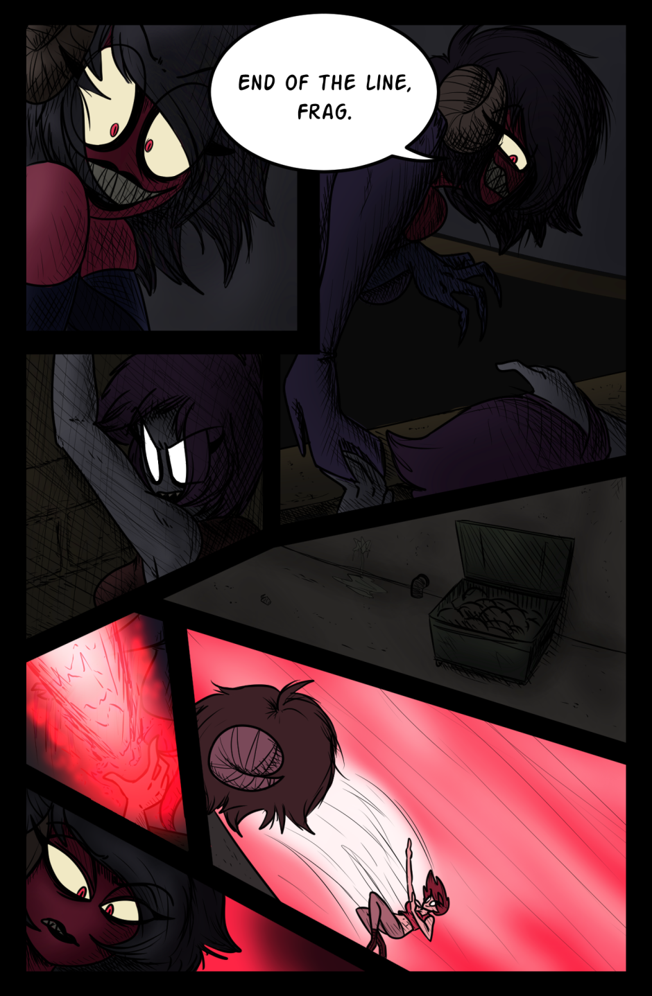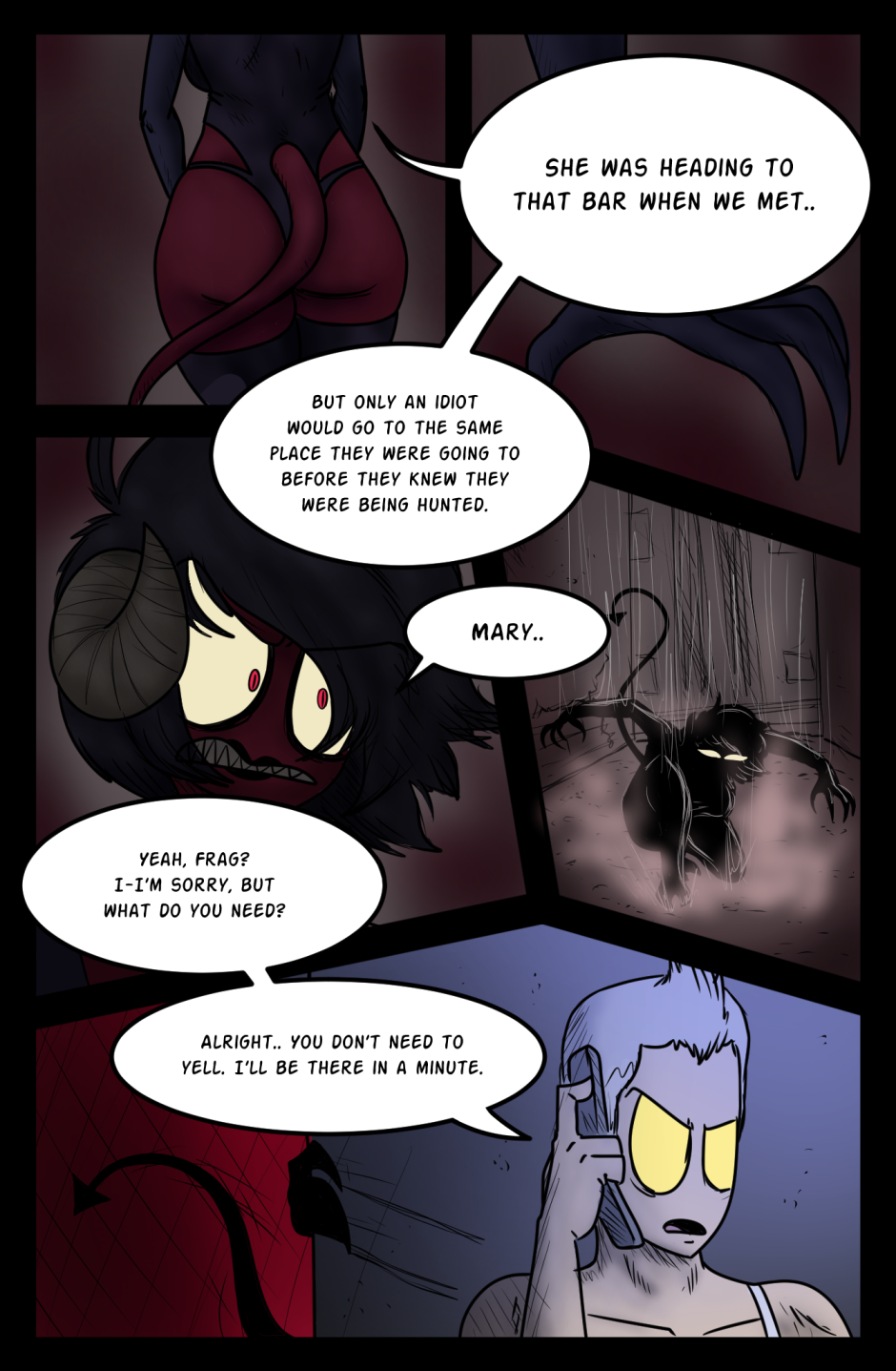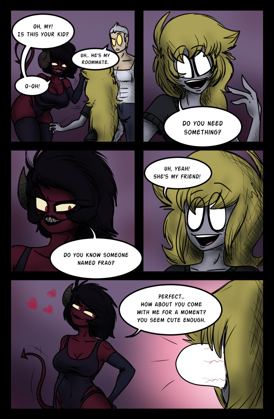 Frag, the pompous and rowdy demon, has a run-in with an assassin named Helena. Fresh out of Hell, Helena's task is to eliminate Frag once and for all. Will she succeed? Will Frag escape her terror? Find out in the new exciting issue of Roomies!