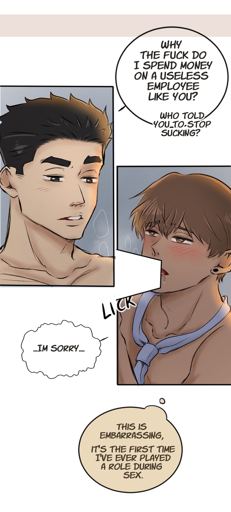 together and have sex, the next day he is called to start working as an executive secretary in a prestigious company, he is surprised to find the man from the night before working there as
