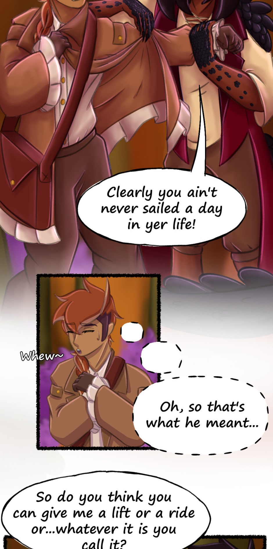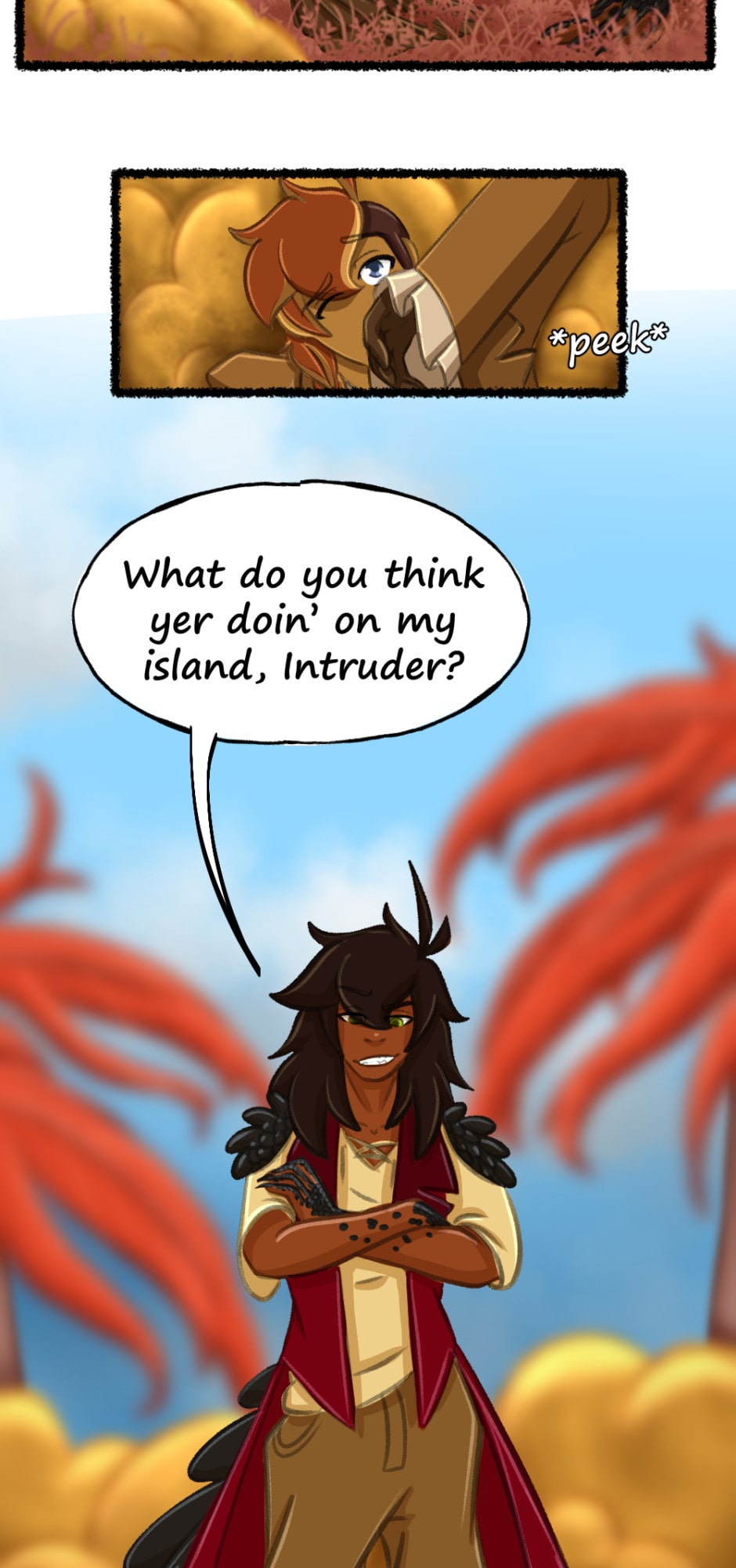 Ahhh! Here’s the one, the only, Captain Melano! He’s my favorite character to write for, with his confidence and bravado. I’d be friends with him! Not sure if Hoatzin’s ready for that though. 🔴