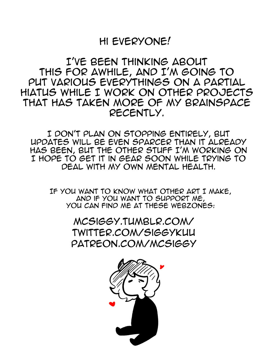 already follow you on Tumblr, Twitter as well I think, but I don't go there really, take the break from this you need, so long as tapas doesn't collapse in the meantime I'll still be here to read it when you get back to it