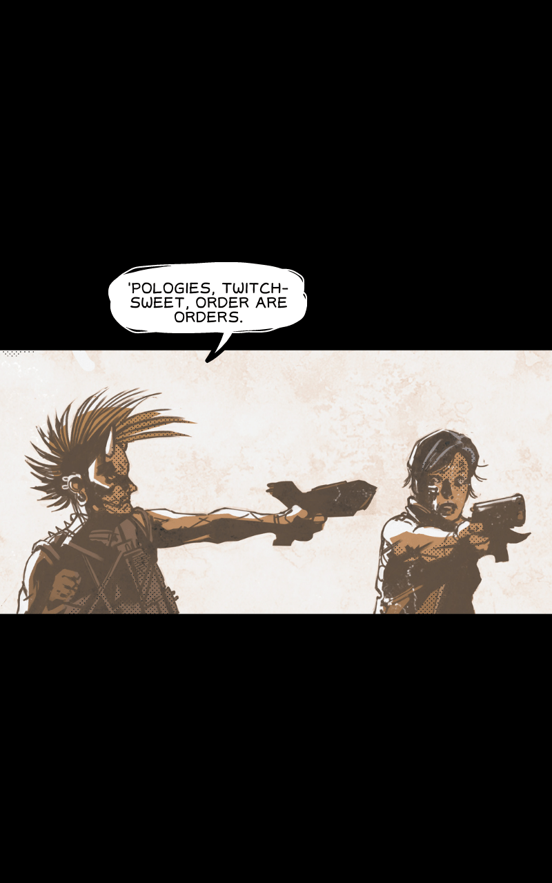 The shining city of Atrius protects its bustling Citizens from the unbridled dangers lurking beyond its walls, or so the government would have us believe. But when a government propaganda actor is sentenced to secret execution, his escape sets about the adventure of a defiant group of exiles and his first experiences beyond the safety of Atrius’ walls. With his city and home behind him, our hero turned conman must survive the lawless, post-apocalyptic expanse of The Fringe.