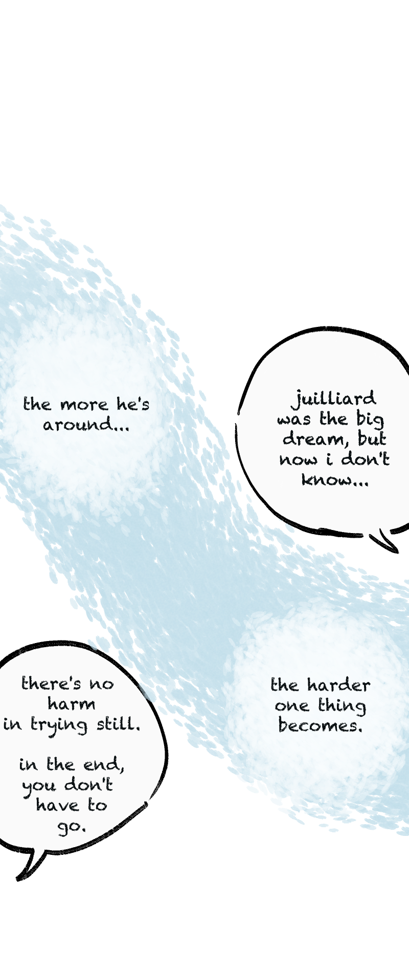 Love is like that. Life, too. When they begin to snowball together, it's time to let things run their courses.