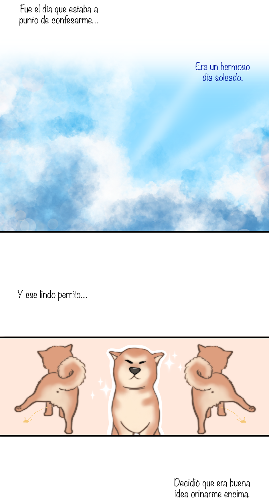 Siempre que intenta confesarse, algo malo pasará. Comienza a llover, el perro le orina encima, le duele el estómago...tal vez el universo quiere que sea un ser puro hasta su final (?