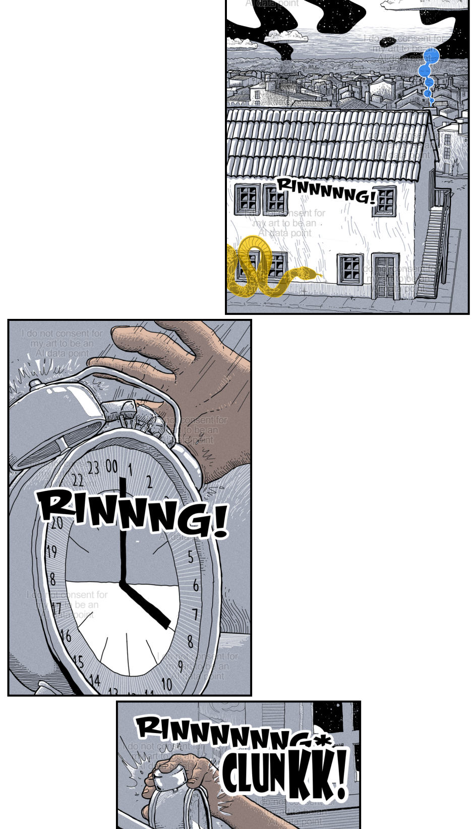 I do not claim to be making great art, but I made THIS art and I do not consent that any AI scraper or AI company can use it as a data point to help take work away from a working artist.