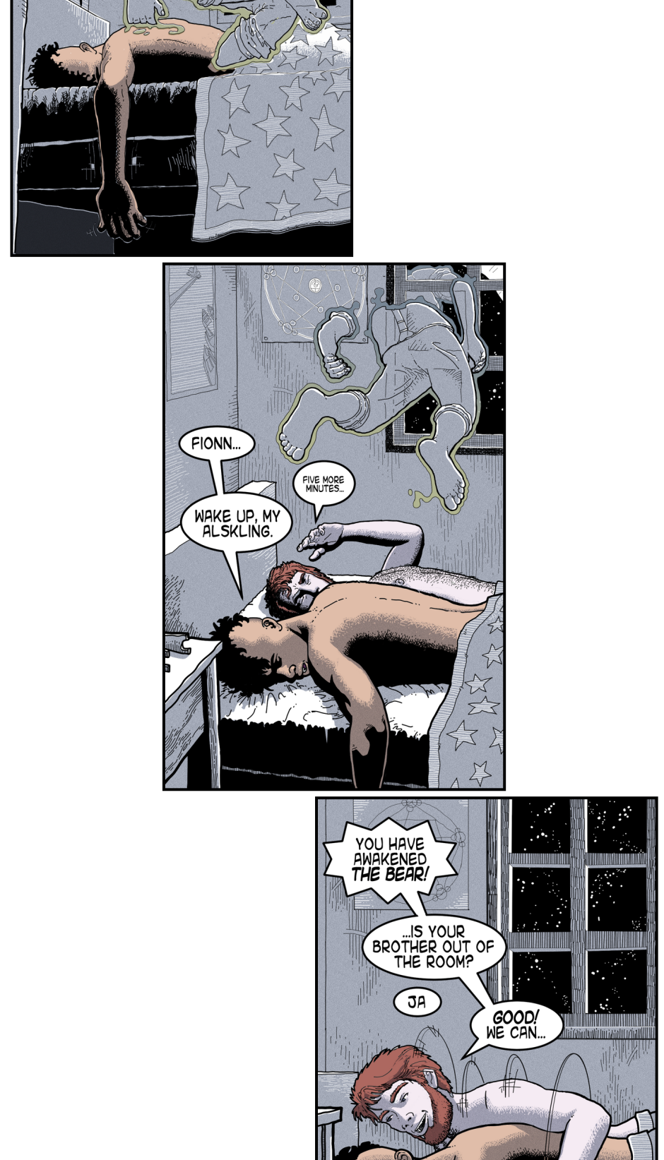 Thought I would establish early on that Bruno was gay. I don't know if two grown men waking up together rises to the level of "Mature", but better err on the side of caution. Don't give the book burners any more ammunition.