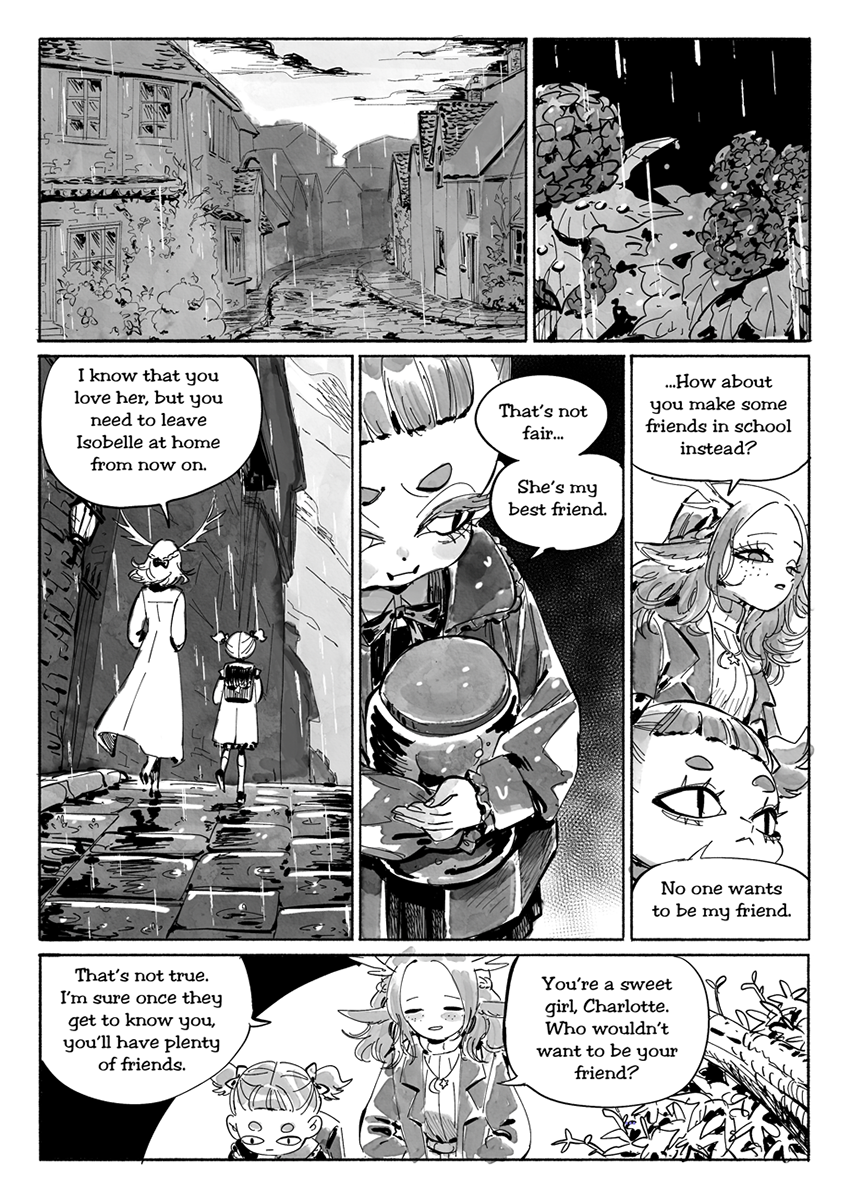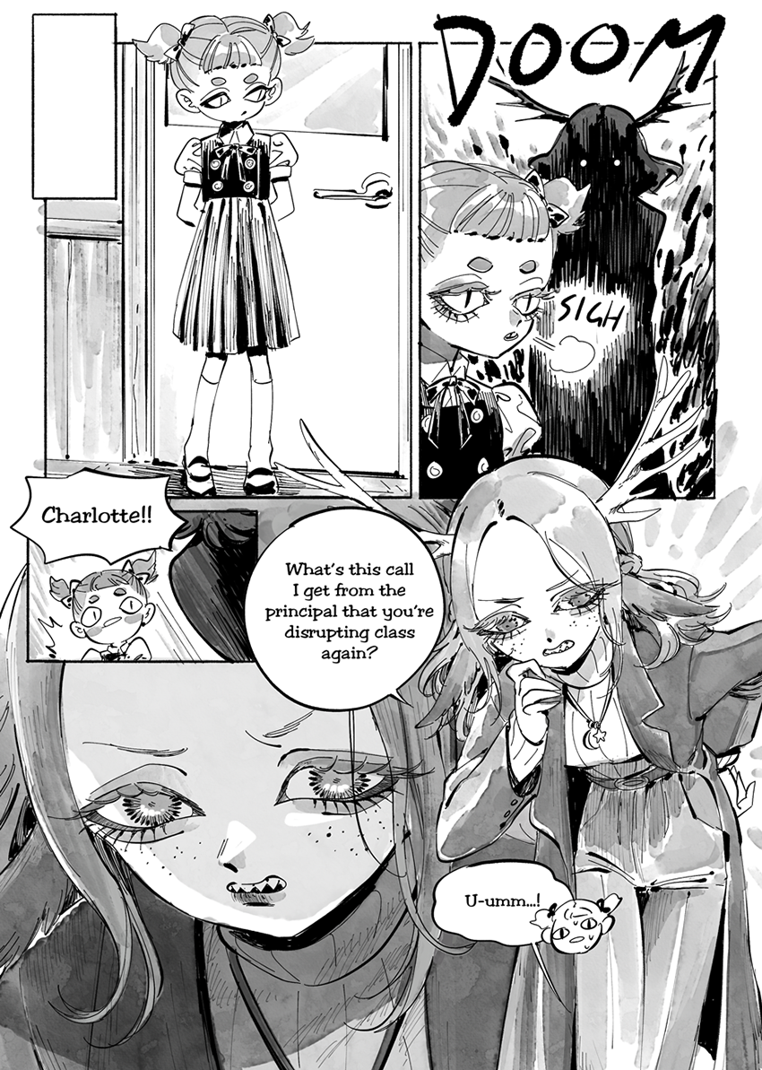 Charlotte is a young witch who lives in Slumber, a strange town home to both humans and demons. She has yet to develop her magical powers, has no friends except for pickled sister, and is constantly living in the shadow of the legendary witch Faust. Though undeterred, Charlotte carries on her life in good spirites while trying to uncover the strange past of Slumber.