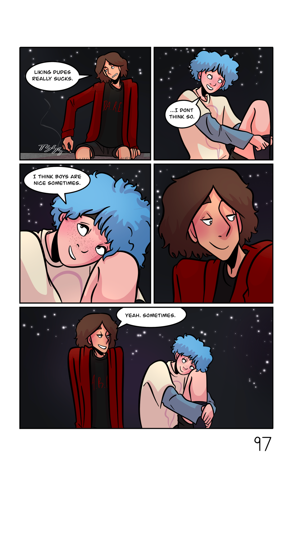 Miles is a shy kid who loves to skate. One summer day after a bad fall, a cute guy helps him off the ground. He's tall, mysterious, handsome and suddenly all that Miles can think about. Could his silly little skatepark crush possibly turn into something else?