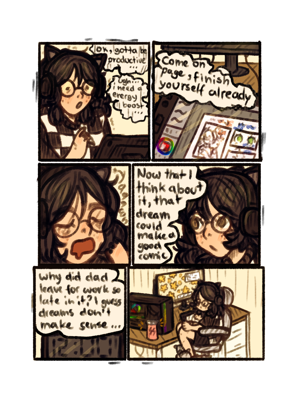 Maxine is an 18 year old webcomic artist living with her dad in a little town in Canada. She lives a normal and pretty boring life until one fateful day she's visited by a ghost that asks her for a favor. She's offered an oppertunity to go on a life-changing adventure and she takes it! She finds new friends, enemies and mysteries. Though on her journey she discovers something she wasn't supposed to know...