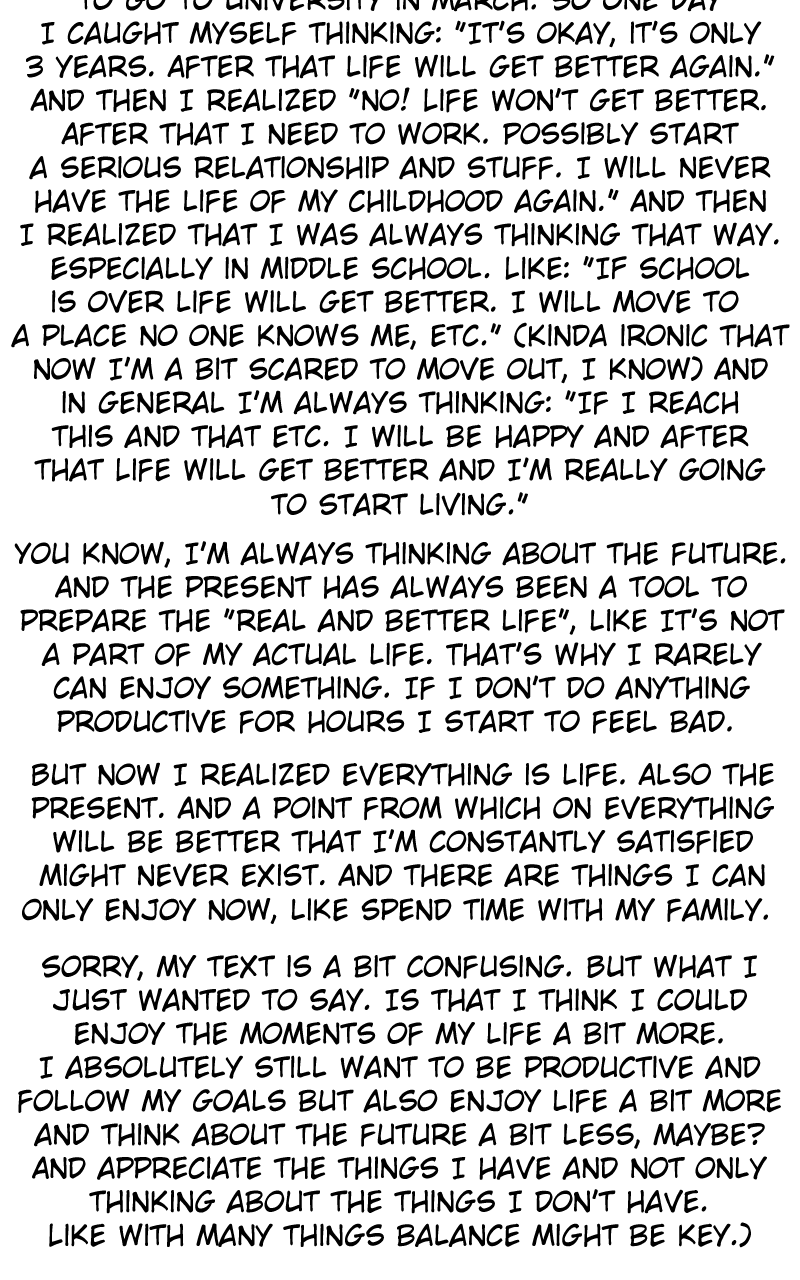 Boy meets diary: Fynn is very shy, socially inept and a people pleaser. He’s only being himself when he is alone. He wants to change himself, but this seems harder than expected. One day he writes in his diary his wish for a person who could support him on his way of improving. A person who could accept him unconditionally. Someone like his diary which always “listens” no matter what he thinks and writes. Fynn’s wish seems to come true: He wakes up next to a man who claims to be his diary.