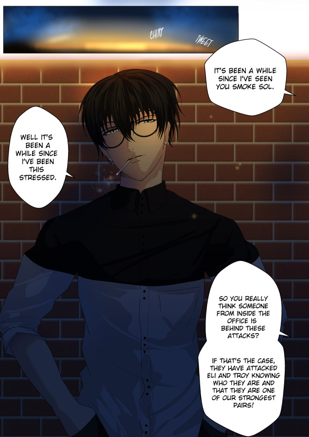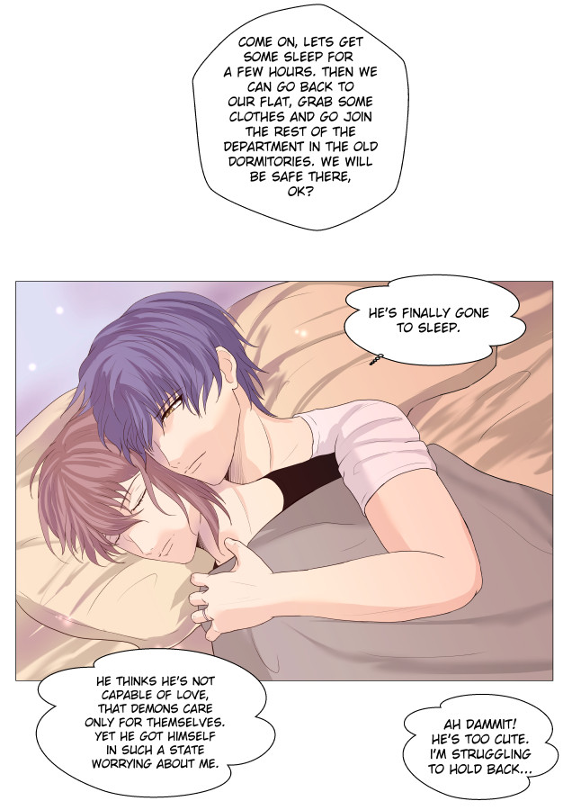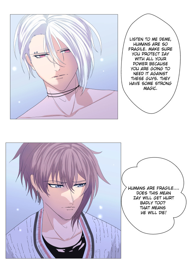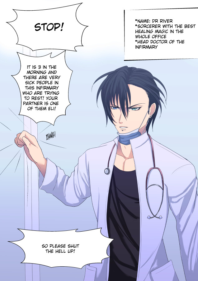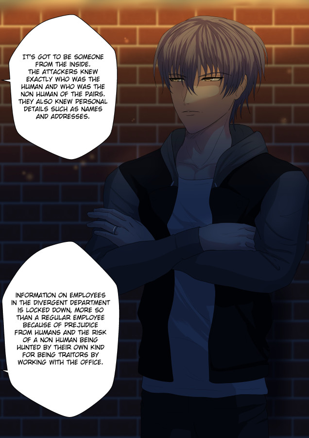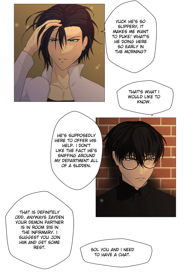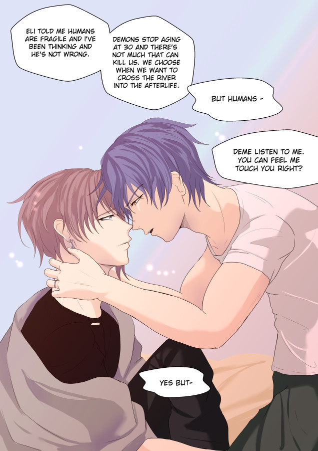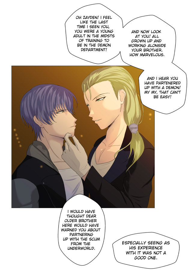 Demetrius works at an organisation called 'The Office' who specialises in exorcisms and fighting all things supernatural. During a fight with a demon, in order to save his manager Zayden, he has to reveal that he is in fact a demon himself! 'The Office' allows him to keep his job as exorcist, but only if he swears a partnership pact with Zayden. So after teaming up and being together 24/7 they start to develop feelings for each other, but is a demon's feelings only lust?