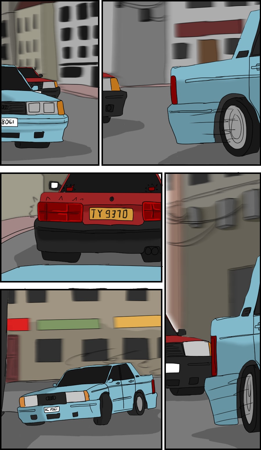 Car chases are great! These cars look like Mercedes Benz W123. I love cars with that similar style.