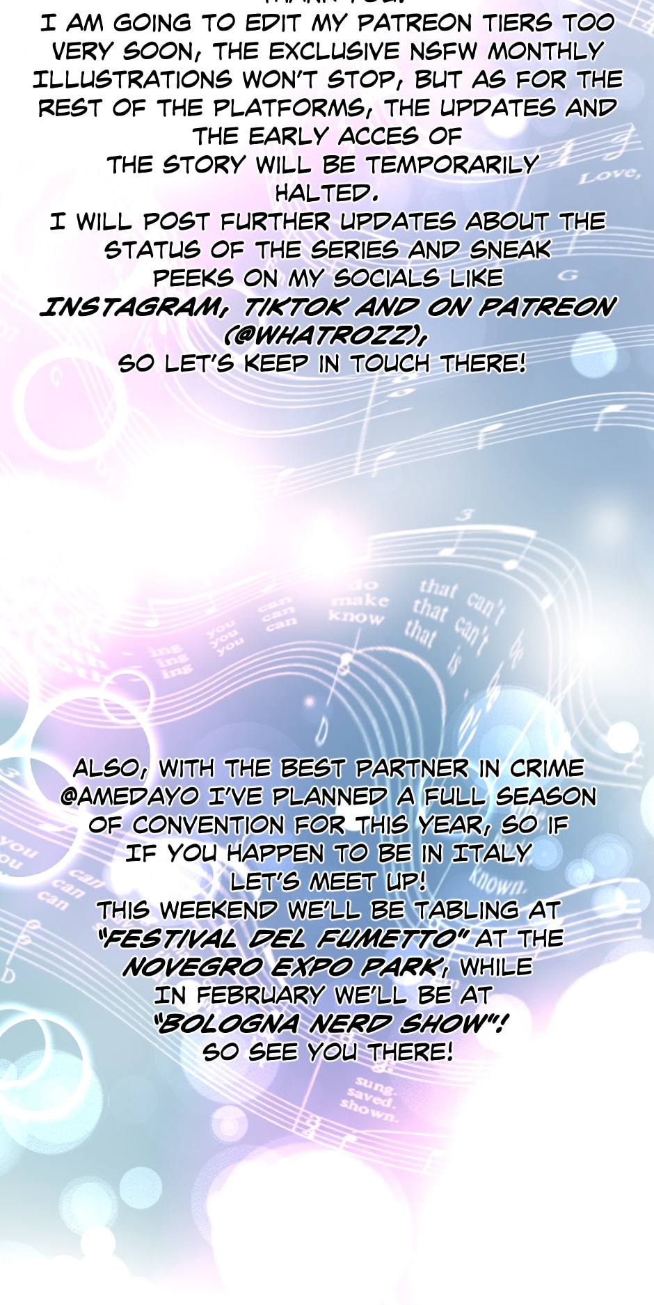 Hi people! I’m sorry for the sudden hiatus but, I swear, I’ll be back asap with amazing news! Alex and Loris’ story will continue I promise! See you soon ❤️