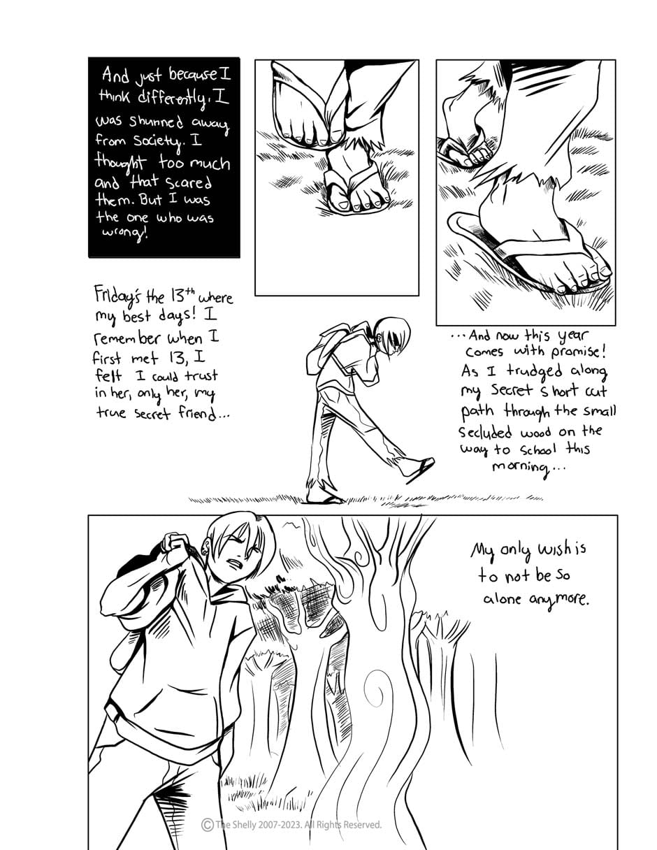 Every Friday the 13th a spirit known as 13 appears to the outcasts of human society, granting