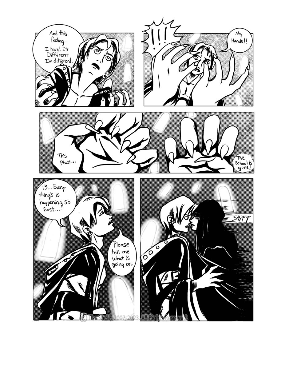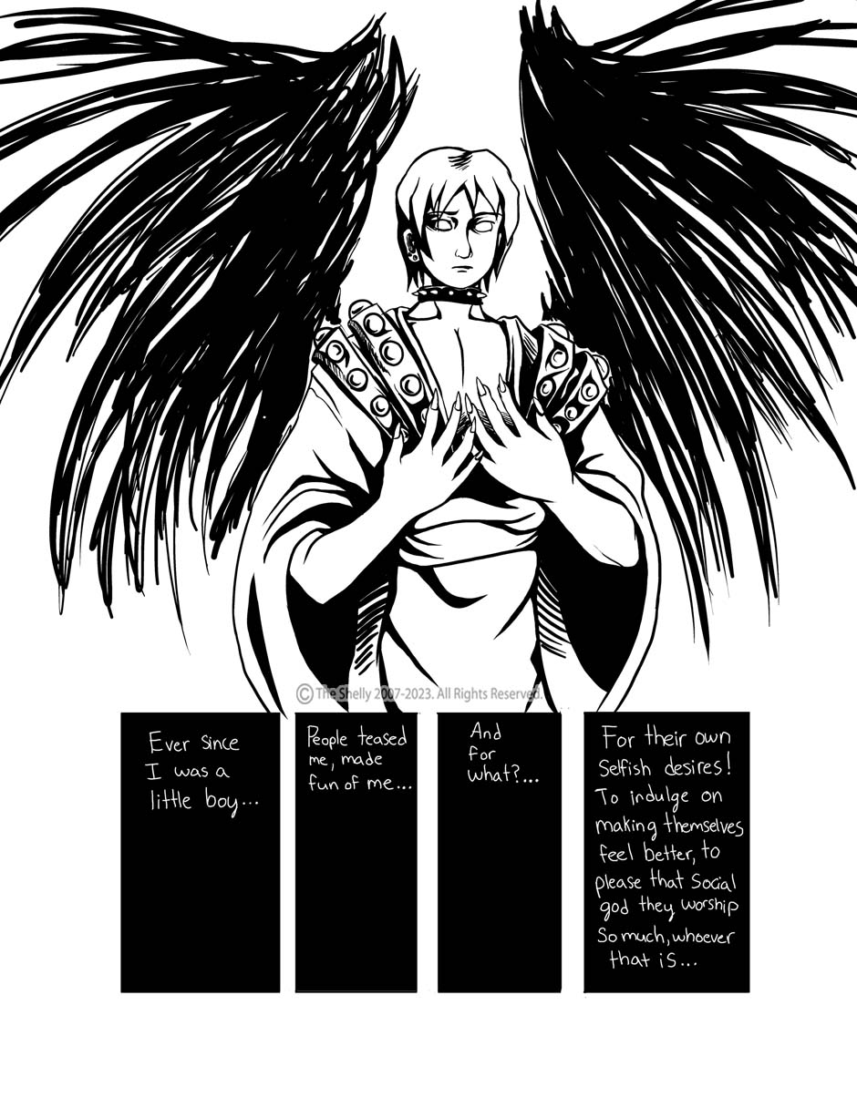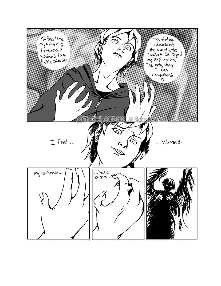 satisfied with this work in a strange degree, I wanted to wow audiences and get attention with my art which I did back in 2007 when I posted it on a now long gone web comic site called Comic Space, as it was gaining popularity then, and...I froze and did not respond! I read it today and I'm like... "WOW! This was GOOD!!!"