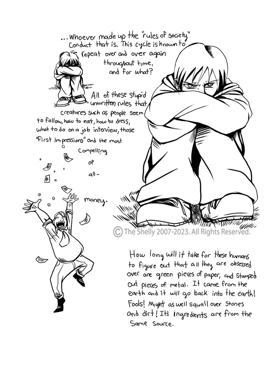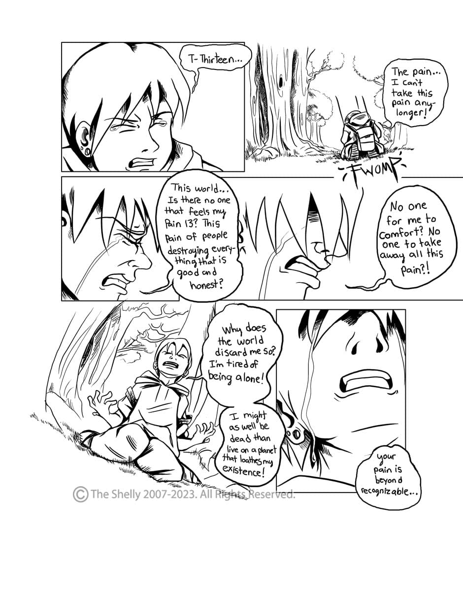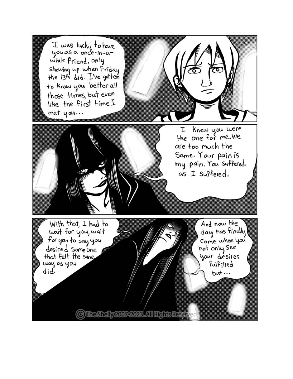 satisfied with this work in a strange degree, I wanted to wow audiences and get attention with my art which I did back in 2007 when I posted it on a now long gone web comic site called Comic Space, as it was gaining popularity then, and...I froze and did not respond! I read it today and I'm like... "WOW! This was GOOD!!!"