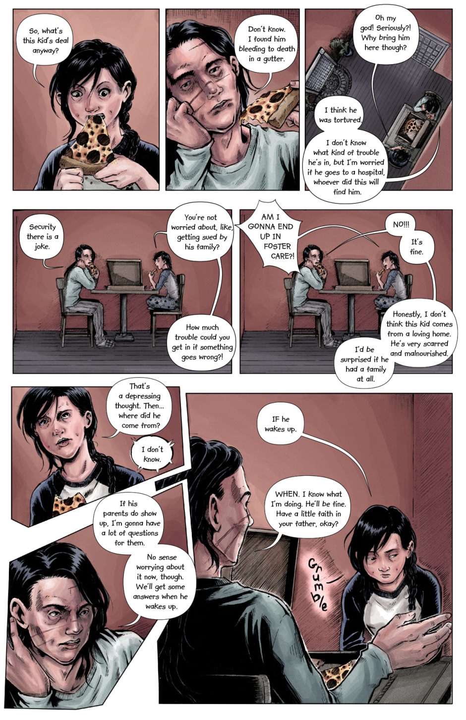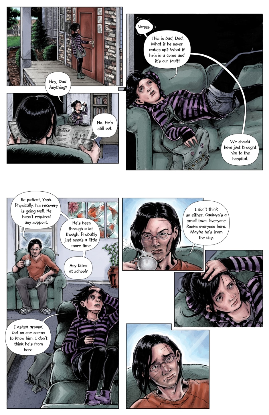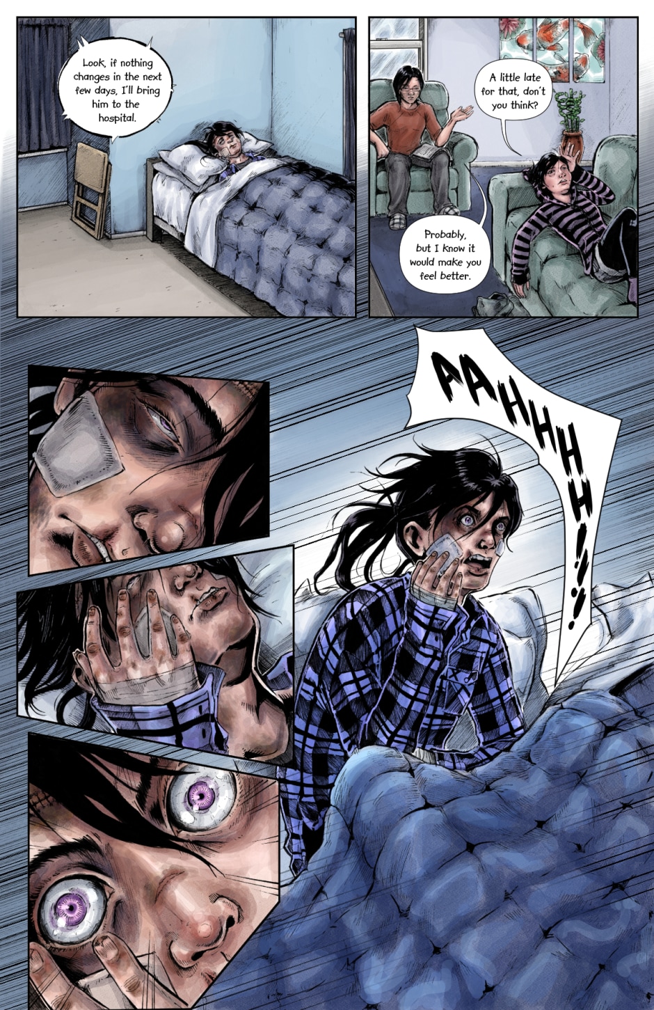 Our heroic little family stress over the status of their patient, anxiously waiting for him to wake up. Then suddenly...