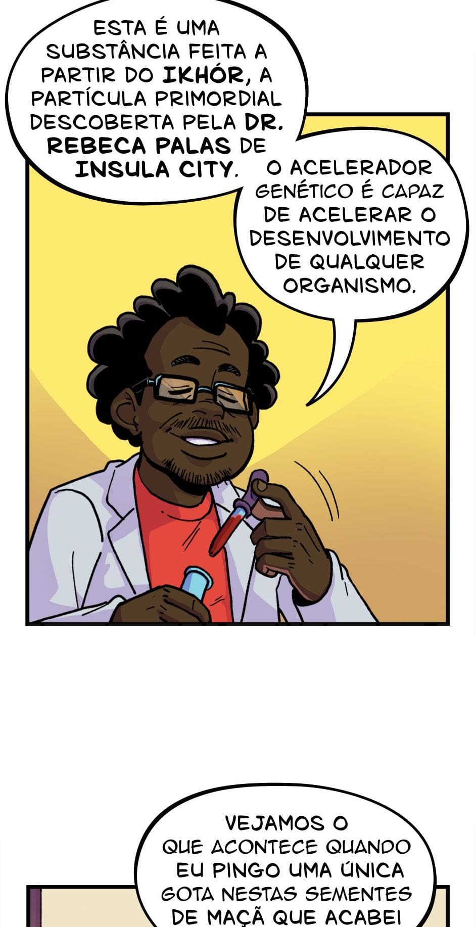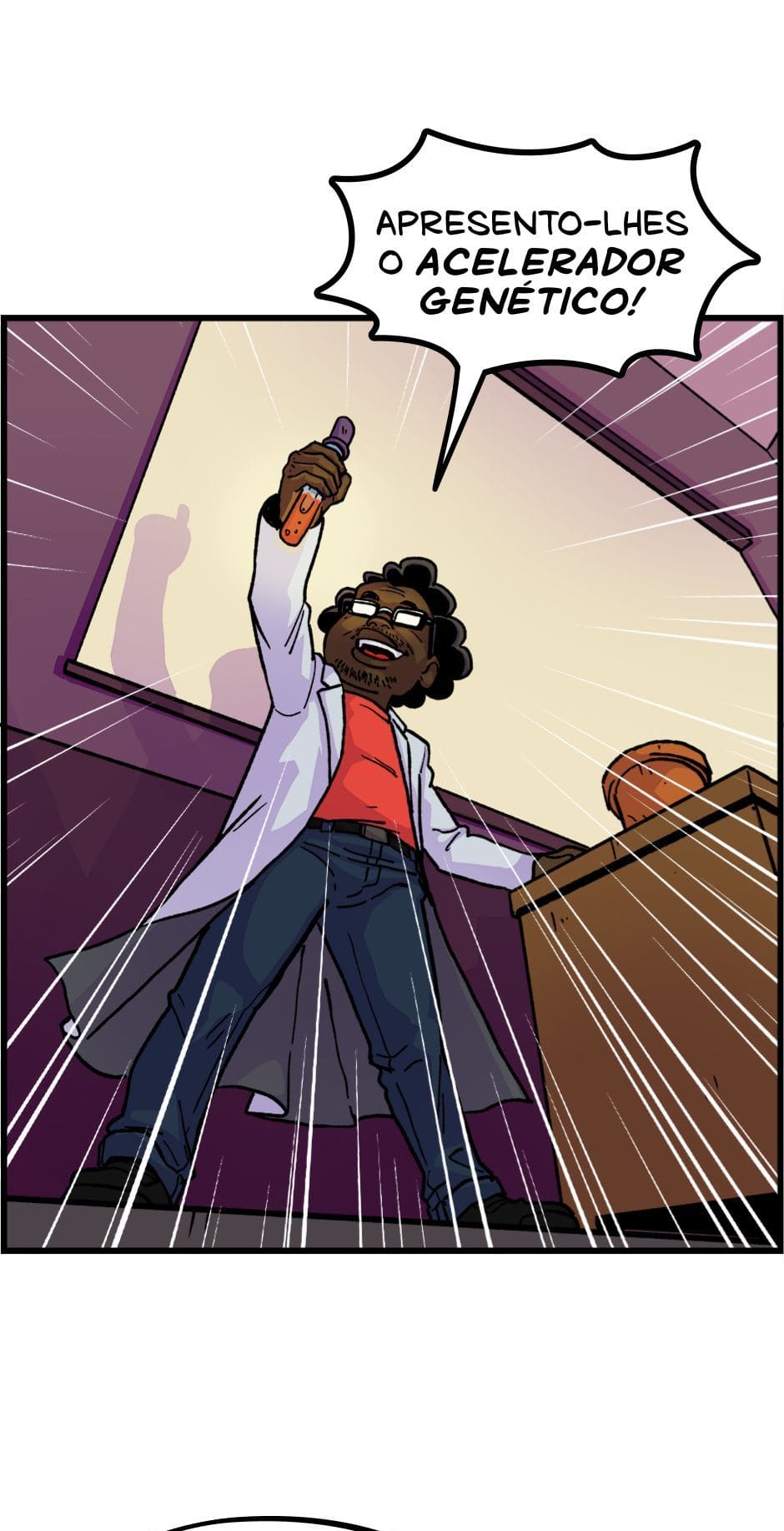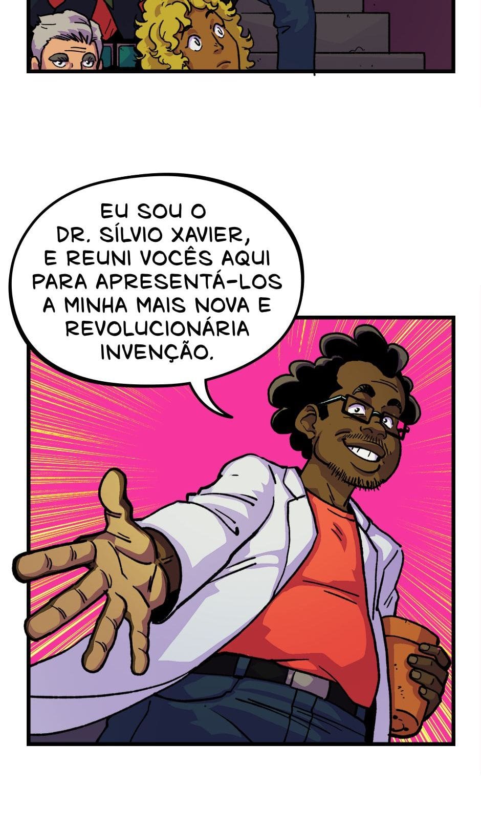 O Dr. Sílvio Xavier apresenta a sua invenção que pode revolucionar o mundo, mas só se uma revolução no modo de produção acontecer antes. Roteiro e letras por Cadu Simões. Desenho e cores por Fred Hildebrand.