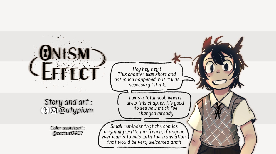 That's it for chapter 1 ! Looking back on this is really funny, I can see how much I was struggling to finish a page back then lol. Btw if speech bubbles look like they don’t fit the text, it’s because they were made for the french version of the dialogues :’’) Chapter 2 starts updating next week here, thank you for reading through