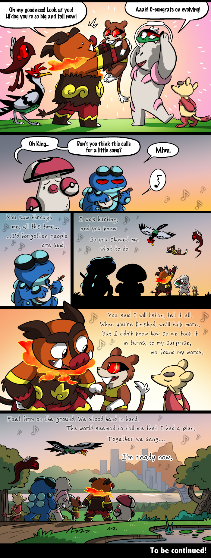 The song King sang last episode was Swamp Song by sulek (https://youtu.be/MskZKXUcVoM) and the song he closes this episode with is Ready Now by dodie (https://youtu.be/gt3Fwn2aM20). I imagine he sings that second one like a Johnny Cash cover
