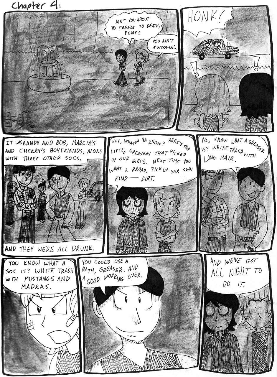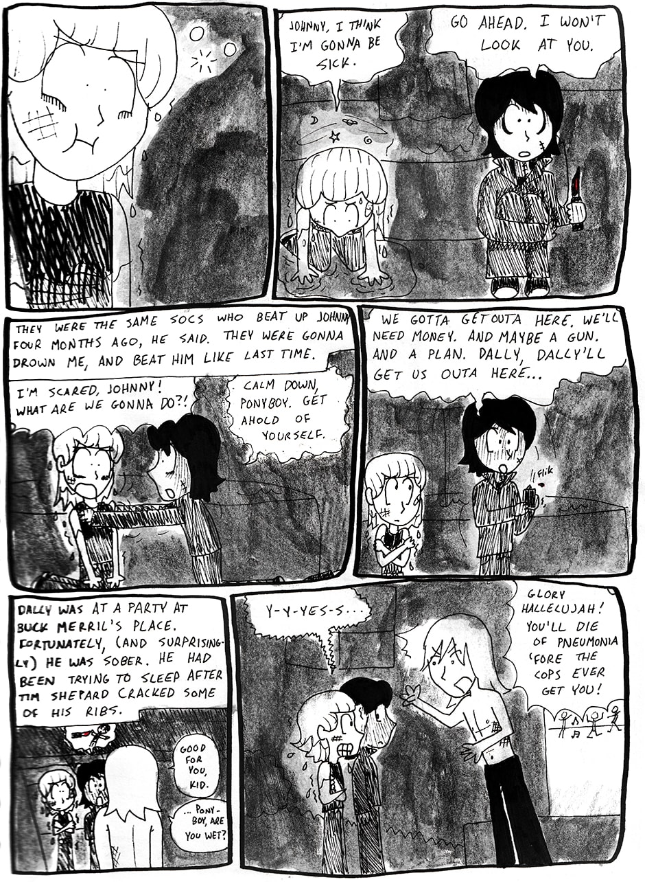 When I was 15, I adapted The Outsiders by S.E. Hinton to a comic as a project for a class. It was a huge milestone in my development as a cartoonist.