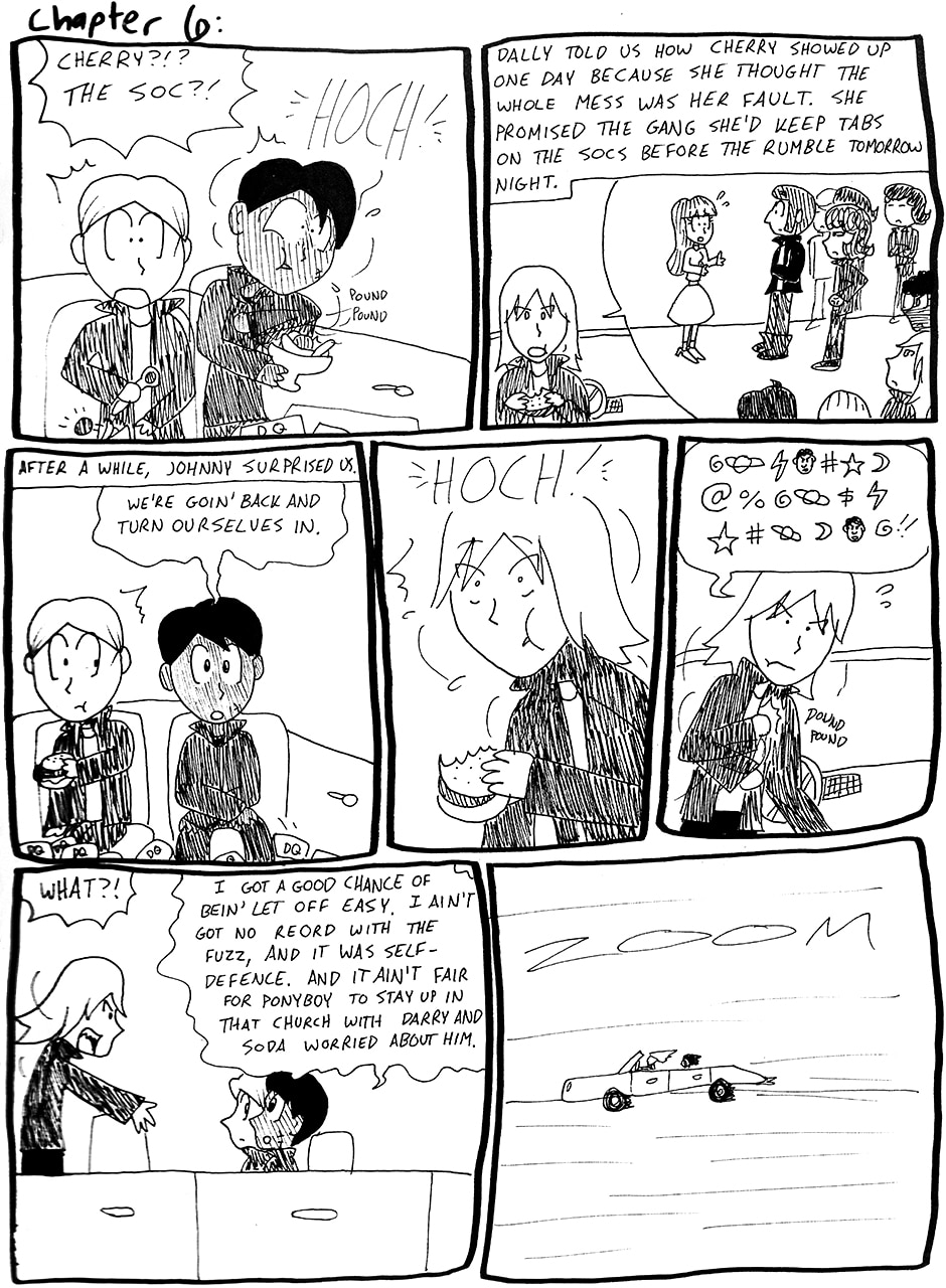 When I was 15, I adapted The Outsiders by S.E. Hinton to a comic as a project for a class. It was a huge milestone in my development as a cartoonist.