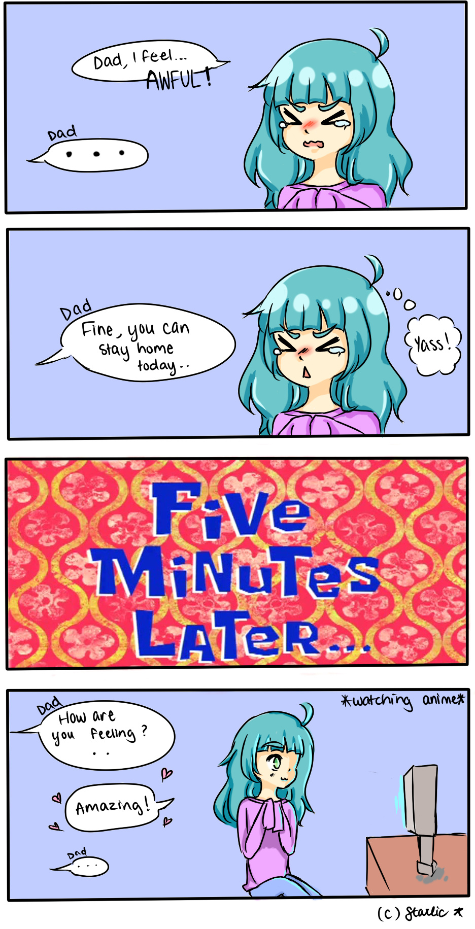 So you guys know how I was sick last week? My fever was really killing me X_X so my dad let me take the day off of school! Watching anime made my day..... Too bad school work came back to haunt me LOL