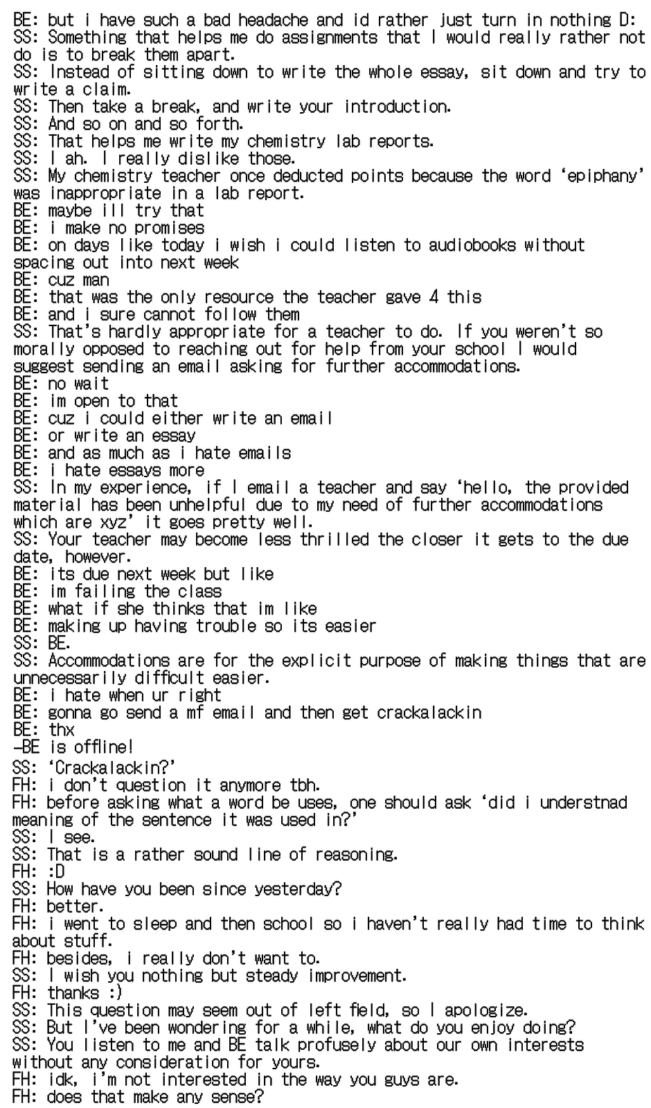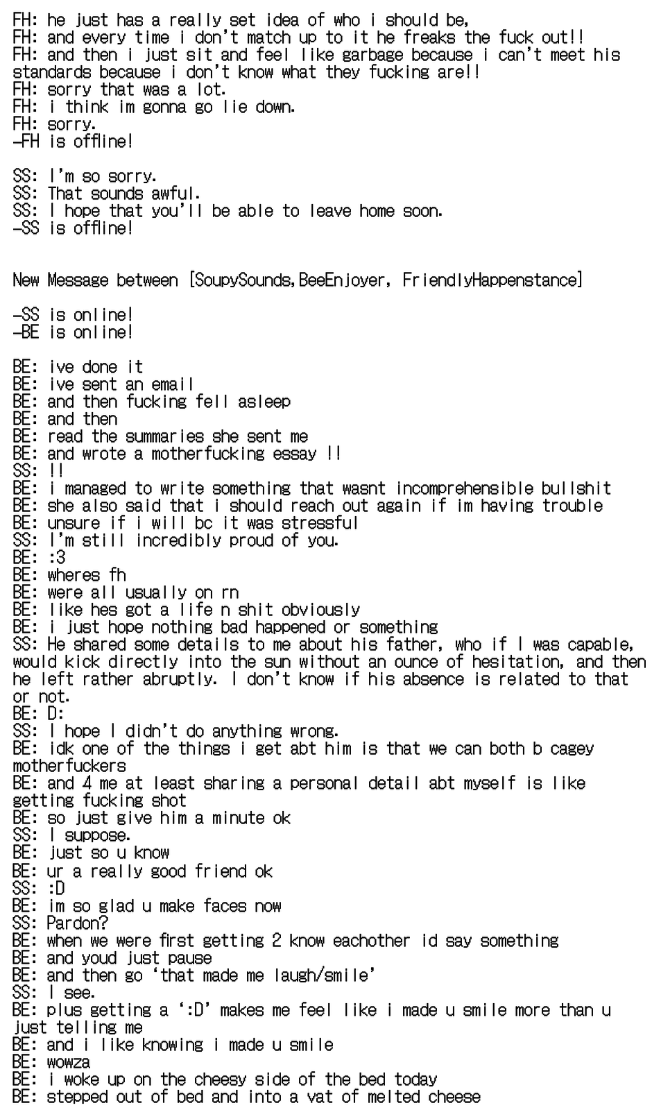 Around a year ago, three kids separated through time found themselves able to talk to each other through a computer program that had mysteriously appeared on their computers. It doesn't seem like this program has any intended purpose, beyond allowing them to become good friends. That is until each of the three kids wake up in a park they have never been to.