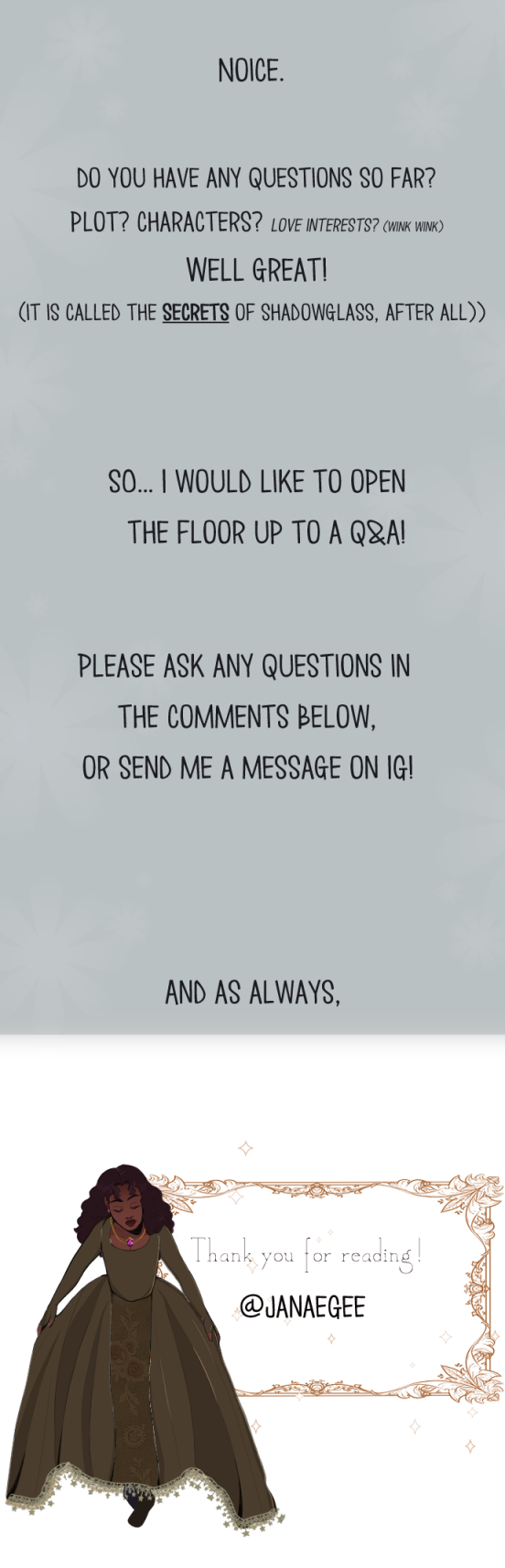 Once upon a time...No, that's not quite right. Meet Maia, the newest resident of ShadowGlass. Most have questions, like where did she come from? Or, is this a sign from the deities? Maia has more however, like why does the sun never shine in ShadowGlass, and why can't she remember anything before coming to this town?