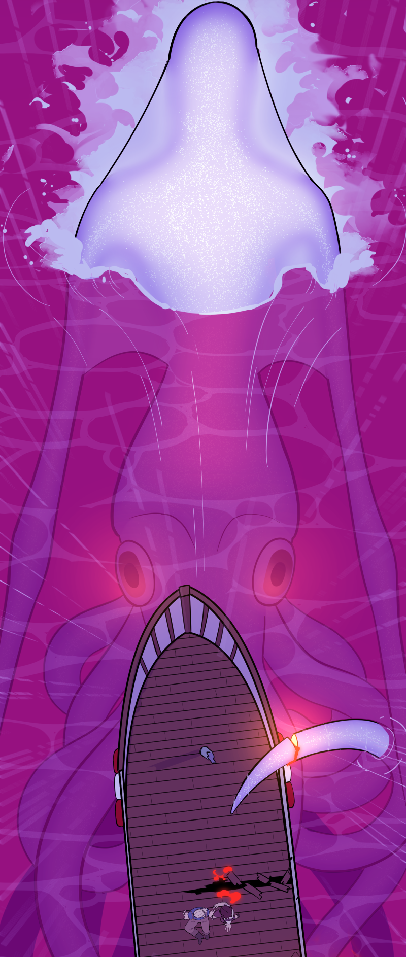Tomorrow's the twentieth anniversary of Good Fortune, a celebration in which the citizens of Akkarby are blessed with the short arrival of the sought-after rainbowfin tuna. Retired and now struggling in his twilight years, Ebisu regales the story of how these fish originally came to be, after his terrifying and fateful encounter with a fabled white squid. Weekly!